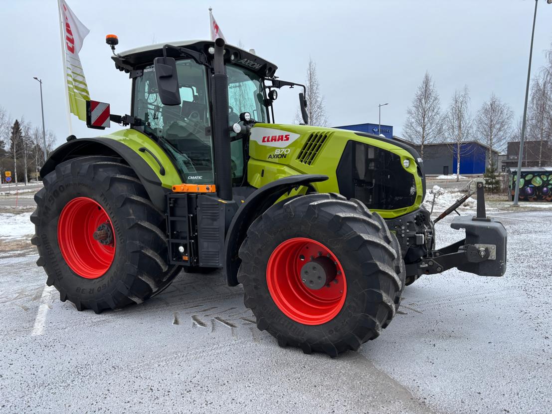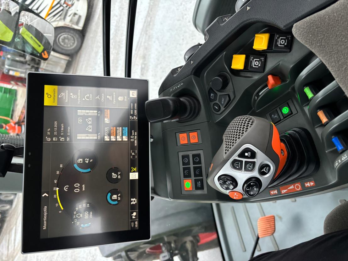 Pienillä tunneilla ja kattavilla varusteilla oleva kone. Lisätietoa: https://www.claas.com/fi-fi/maatalouskoneet/traktoreilla/axion-800 Varusteet: CLAAS-etunostolaite 5,8 t TJ_B03_0022 Ulkoinen käyttö etunostolaitteelle ja etulohkon venttiilille TJ_B06_0015 Etuvoimanotto 1000 rpm TJ_B08_0104 Elektroninen asennonsäätö etunostolaitteelle TJ_I02_0041 CEBIS-näyttö kosketusnäytöllä TJ_I04_0042 CMATIC, 2 moottorin kierrosmuistia + CSM, CEBIS TJ_I10_0011 ISOBUS-valmius ISO-takapistorasialla TJ_I18_0010 Task Control Basic -aktivointi traktorissa TJ_I24_0200 SAT 900 GNSS-vastaanotin ja automaattiohjaus TJ_I25_0161 CLAAS-kommunikaatiomoduuli (LTE) TJ_I26_0130 TELEMATICS Advanced -lisenssi – 5 vuotta TJ_I28_0100 CEMIS 1200 -näyttö TJ_I29_0190 CLAAS Remote Service – 5 vuotta TJ_I29_0210 ISOBUS-aktivointi CEBIS-järjestelmään TJ_I29_0300 GPS PILOT -aktivointi – SAT 900 GNSS-vastaanotin TJ_I29_0310 TC-SC -aktivointi – CEMIS 1200 -näyttö TJ_I29_0320 TC-GEO -aktivointi – CEMIS 1200 -näyttö TJ_I29_0350 Variable Rate Application (VRA) -aktivointi TJ_I38_0020 PROFI CAM -takakamera CEBIS-järjestelmässä, 1x CPC-ohjaamokamera-liitäntä TJ_J10_1010 Pick-up-hinauslaite, hydraulinen ulostyöntö TJ_J14_0010 Vetokoukku pick-up-hinauslaitteelle TJ_J42_0024 Paineilmajarrut (2 linjaa), ilmansuodattimella TJ_J44_0030 Hydrauliset jarrut paineilmajarruille TJ_J46_0010 ABS-liitäntä perävaunulle, 12 V TJ_K02_0205 LS-hydrauliikkajärjestelmä, muuttuvatilavuuksinen pumppu 205 l/min TJ_K04_2150 5 + 2 lohkoa, sähköhydraulinen proportionaaliohjaus TJ_K12_0020 Power Beyond, kuormantunnistusliitännät ilman tasapintaliittimiä TJ_N02_0040 CMATIC-portaaton vaihteisto TJ_N04_0250 Välityssuhde 50 km/h TJ_N06_0521 PROACTIV-etuakseli jarruilla TJ_N10_0120 Voimanotto (PTO) 540/540 ECO + 1000 rpm TJ_N14_0010 Voimanottoakseli, 6 ja 21 uritusta, 1 3/8" TJ_N20_0010 Pysäköintijarru REVERSHIFT-vivussa TJ_N22_0371 Etulokasuojat, kääntyvät, 720 mm TJ_P02_0514 295 hv maks. teho, 284 hv tyyppihyväksytty nimellisteho, ECE R 120 TJ_P16_0402 Ilmakompressori TJ_P22_0010 Moottorijarru TJ_Q02_0010 Ohjaamo 4-pistejousituksella TJ_Q08_0040 Takalasinpyyhin, oikeanpuoleinen pyyhin TJ_Q14_0062 Sähköpeili, laajakulmapeilillä TJ_Q21_0070 Työkalulaatikko TJ_Q22_0010 Irrotettava säilytyslaatikko, vasen TJ_Q30_0020 Lisäliitäntäpistorasiat TJ_Q40_0030 2 korkealle sijoitettua ajovaloa, A-pilari TJ_Q56_0020 4x LED-ajovalot, 2x LED-työvalot konepellissä TJ_Q58_0050 LED-työvalot – Premiu