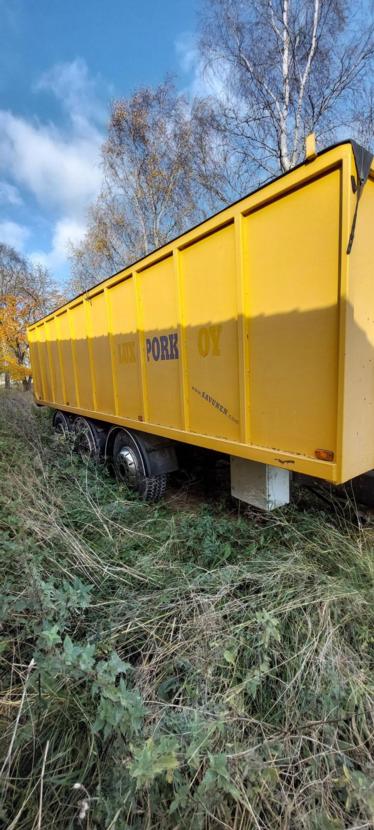 Myyntitilissä asiakkaan lukuun 3-akselinen kiinteälaitainen perävaunu. Savusen konepajan valmistama perävaunu. Alusta ilmajousitettu. Omalla sähkötoimisella kompressorilla varustettu. Kolmas akseli pakko-ohjattu. Rengaskoko 315/80 R22,5. Lavalla pressukaaret ja kelattava kuormapeite. Lavan mitat: Pituus 7,5m, Leveys 2,45m ja korkeus 1,70m. Tilavuus 31M3. Tästä vankkarakenteinen perävaunu esim. viljan ja hakkeen ajoon.