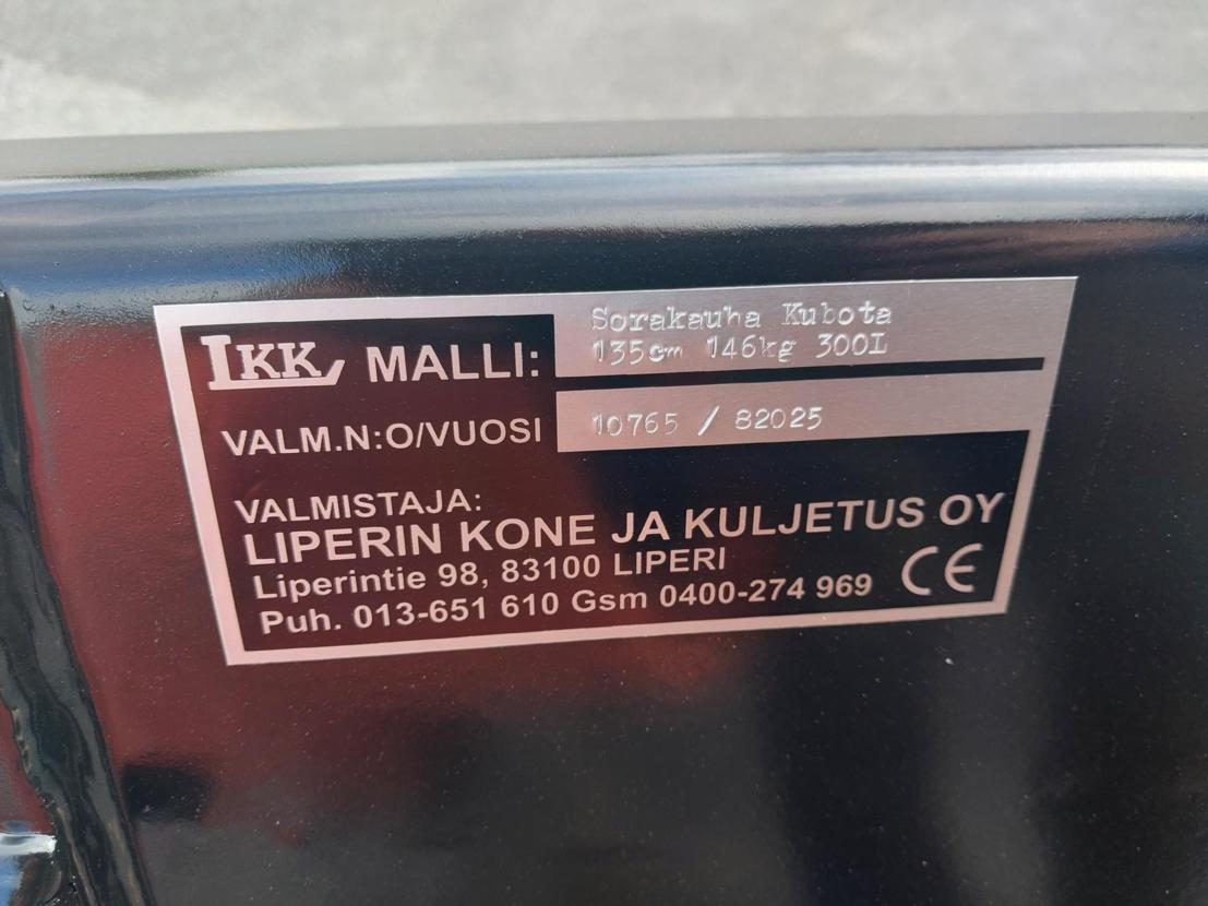 Uusi asiakkaan special varusteltu kauha. Pohja noin 50 cm syvä ja kauha on 135 cm leveä. Korkeutta kauhalla on noin 70 cm.Soveltuu hyvin esim kubotan uusiin kiinteistötraktoreihin tai liukuohjattuihin kuormaajiin. Sovite bobcat.