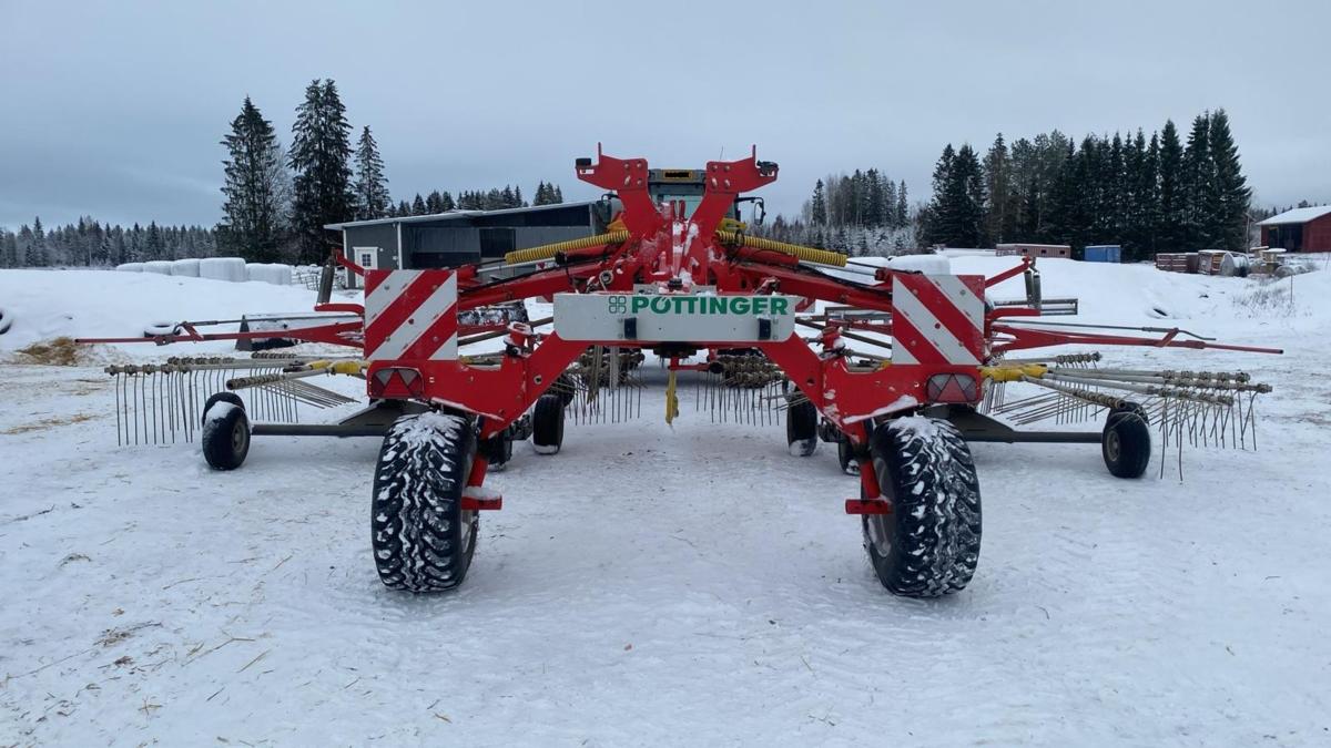 Monipuolinen Pöttinger 2-roottinen karhotin kesän heinätöille.
