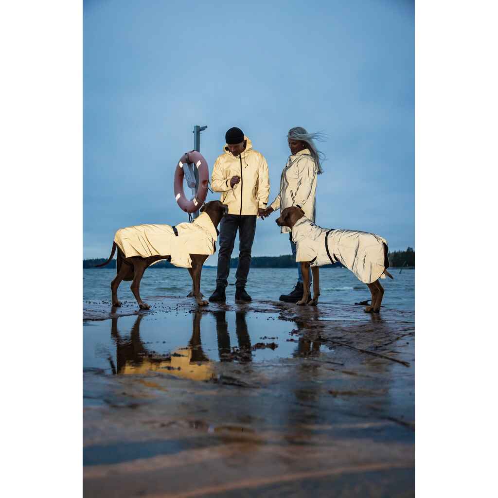 Paikka sadetakki ei ole ainoastaan tyylikäs, vaan se on myös suunniteltu äärimmäisen käytännölliseksi. Vedenpitävä kangas pitää kuivana ja lämpimänä, ja heijastava pinta loistaa pimeässä kirkkaana varmistaen näkyvyyden autoilijoille. Takissa on iso, säädettävä huppu, joka tarjoaa lisäsuojaa sääolosuhteilta. Väreinä keltainen ja tummanharmaa.