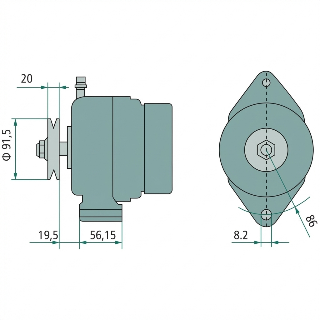 | Etäisyys hihnapyörästä laturiin | 27,0 mm |
