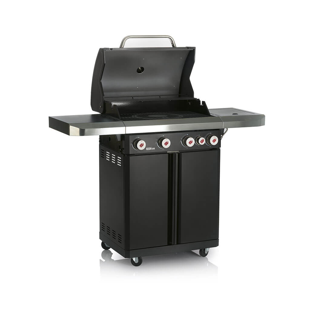 Grillissä on neljä poltinta sekä sivukeitin, mekaaninen sytytys, lämpöhylly ja alakaappi tarvikkeille.