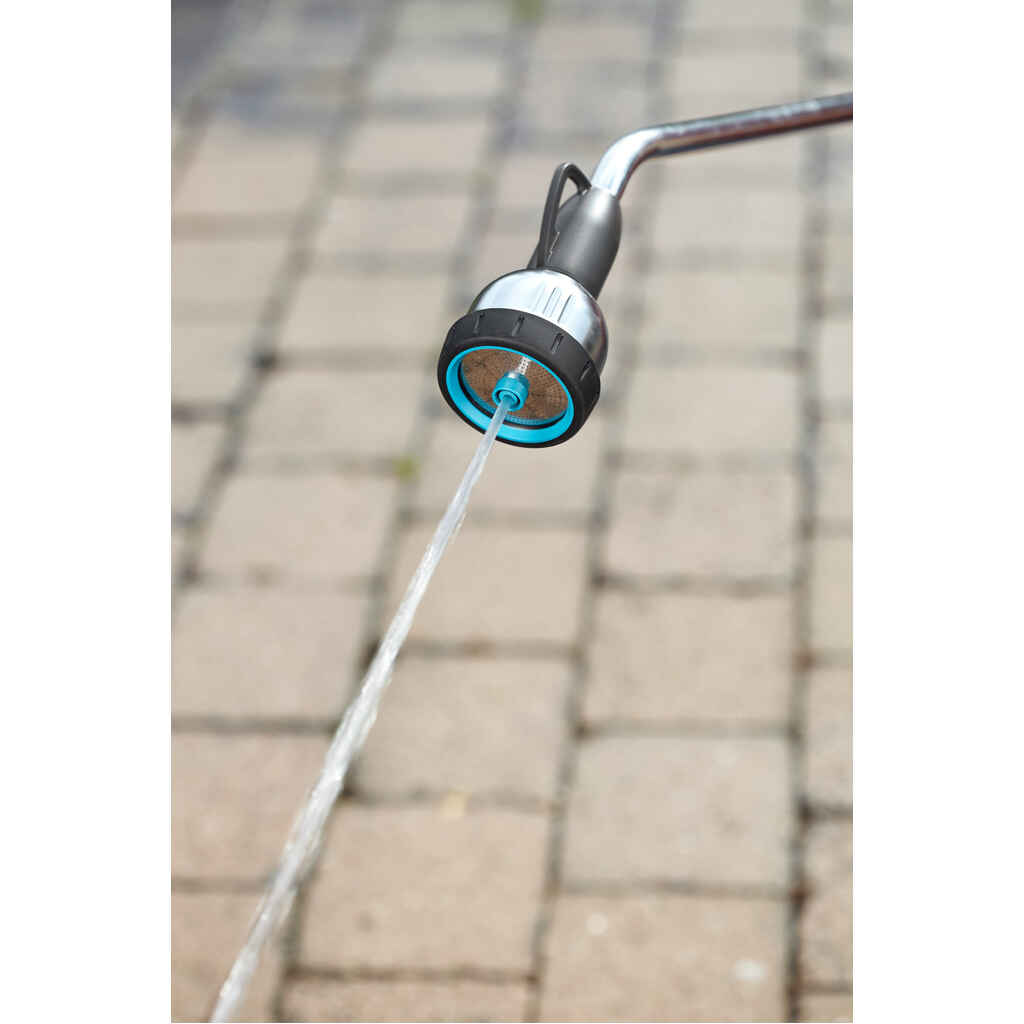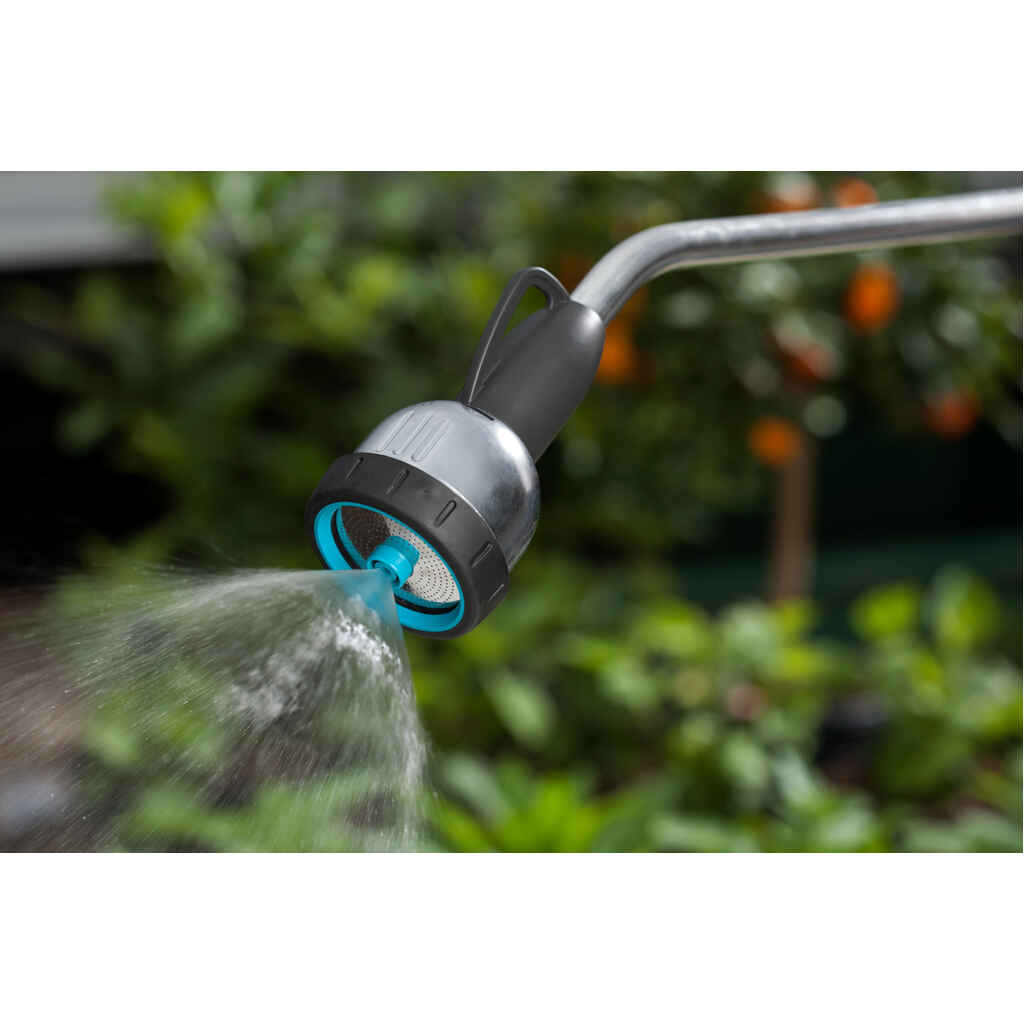 GARDENA Premium -kasteluvarsi on 90 cm pitkä, ja se sopii hyvän ulottuvuutensa ansiosta suurempien istutusalueiden kasteluun ja vaikeasti ulottuvilla olevien kohteiden kätevään puhdistamiseen. Valittavissa on kolme suihkumuotoa: pehmeä suihku, kova pistemäinen suihku puhdistukseen sekä hieno sumu hellävaraiseen kasteluun. Ergonominen, lukittava liipaisin ja yhdellä sormella säädettävä veden virtaus tekevät käytöstä erityisen miellyttävää. Premium-kasteluvarsi on varustettu metalliosin, mikä tekee siitä äärimmäisen kestävän. Helppo ja nopea varastoida käytön jälkeen ripustuskoukun ansiosta. Jäätymisen kestävä.