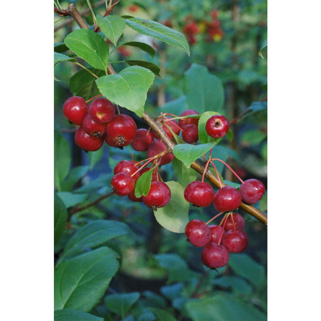 Marjaomenapuu on kaunis ja hyvin talvenkestävä, leveälatvuksinen koristepuu. Kukkien nuput ovat vaaleanpunaiset, valkoiset tai punertavat. Kukat ovat avauduttuaan valkoiset ja halkaisijaltaan noin 5 cm. Touko-kesäkuulle ajoittuva kukinta on hyvin runsas ja näyttävä. Myöhemmin puuhun muodostuu pieniä, punaisia, marjamaisia hedelmiä.