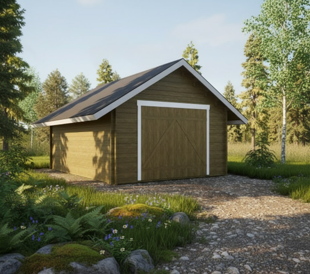 Autotalli AT22L Hirsitalli Puuovilla. 22m2,4000x5420mm, Kevythirsi 42mm Tässä tallissa autosi on turvassa ja suojassa sään vaihteluilta. Talli sopii myös erinomaisesti varastoksi, talliksi mönkijälle, moottorikelkalle sekä puutarhavälineiden ja koneiden säilytykseen. Puinen hirsitalli on komea yksityiskohta kotipihallesi tai mökille. Hirsitalli toimitetaan puuosatoimituksena tilaamaasi osoitteeseen ja se on helppo kasata mukana tulevilla ohjeilla.