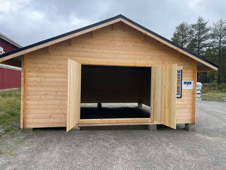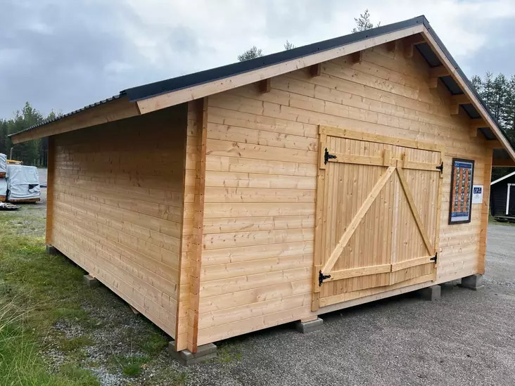 Autotalli AT30L Hirsitalli Puuovilla. 29,9m2, 5610x5420mm, Kevythirsi 42mm Tässä tallissa autosi on turvassa ja suojassa sään vaihteluilta. Talli sopii myös erinomaisesti varastoksi, talliksi mönkijälle, moottorikelkalle sekä puutarhavälineiden ja koneiden säilytykseen. Puinen hirsitalli on komea yksityiskohta kotipihallesi tai mökille. Hirsitalli toimitetaan puuosatoimituksena tilaamaasi osoitteeseen ja se on helppo kasata mukana tulevilla ohjeilla.