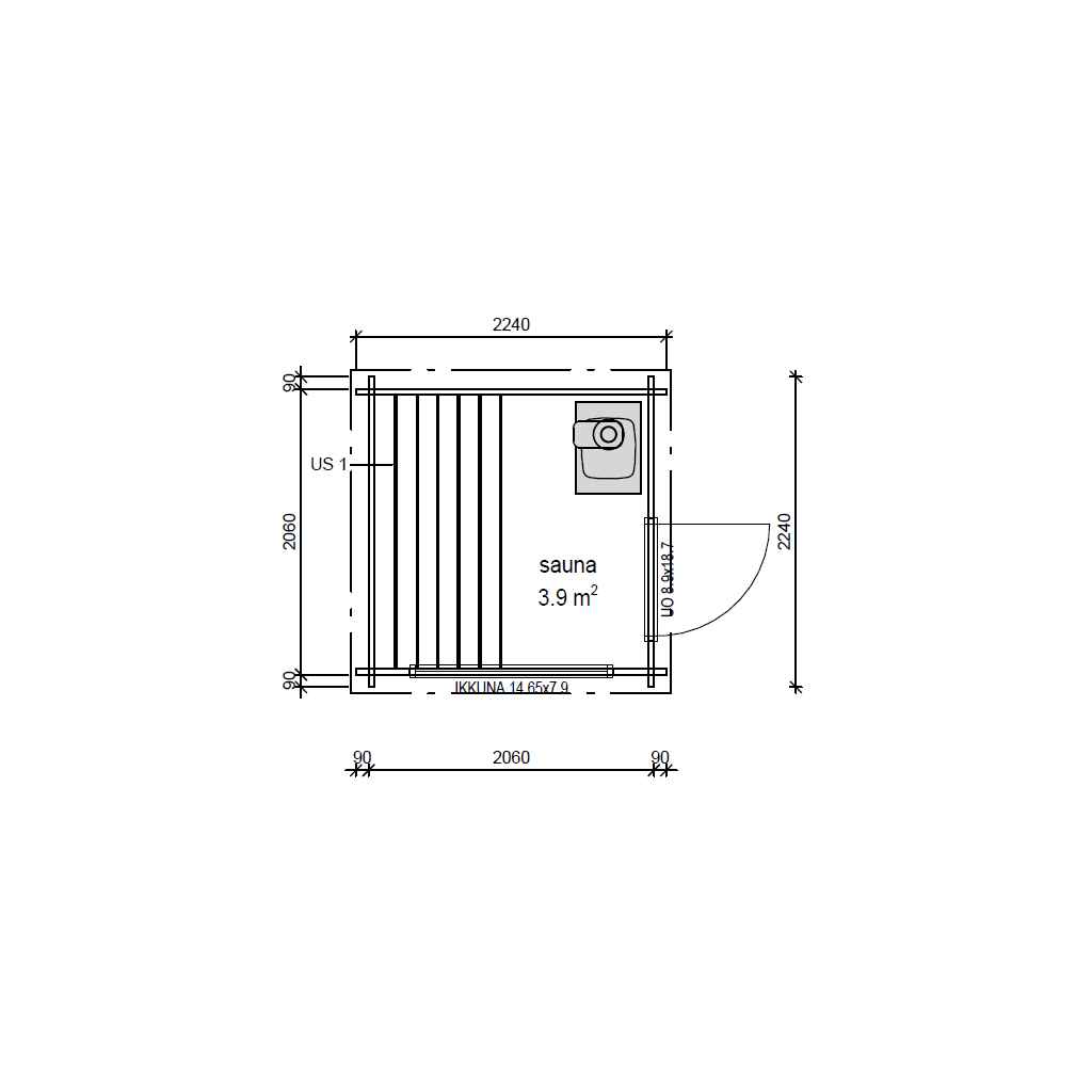 Kuutiosauna, 4m2 puuosatoimitus