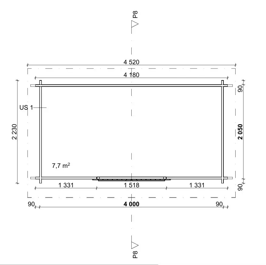 - Pohjan koko: leveys 4000 mm, pituus 2050 mm