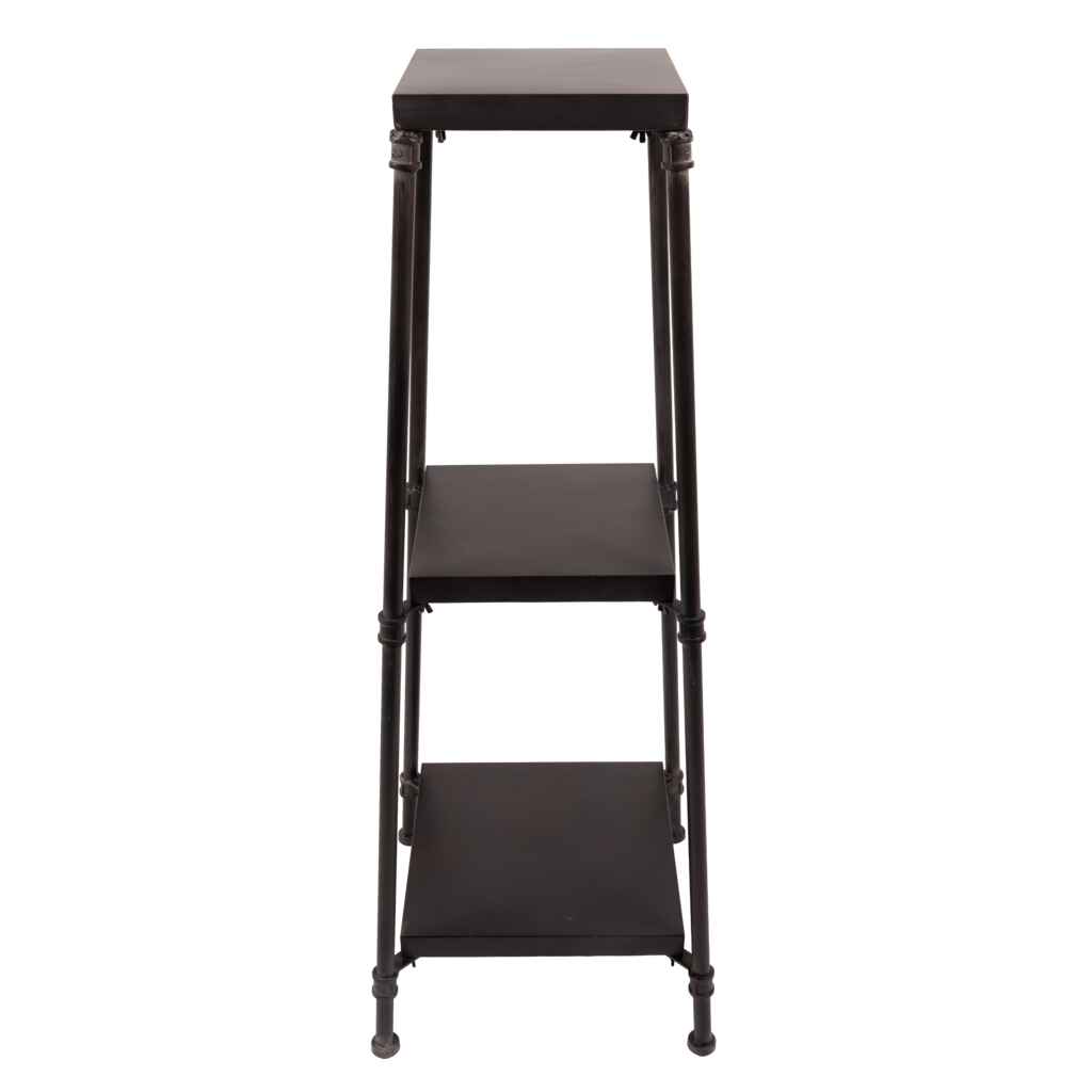 Metallinen hyllykkö puutarhaan. Koko 37x37x104 cm.