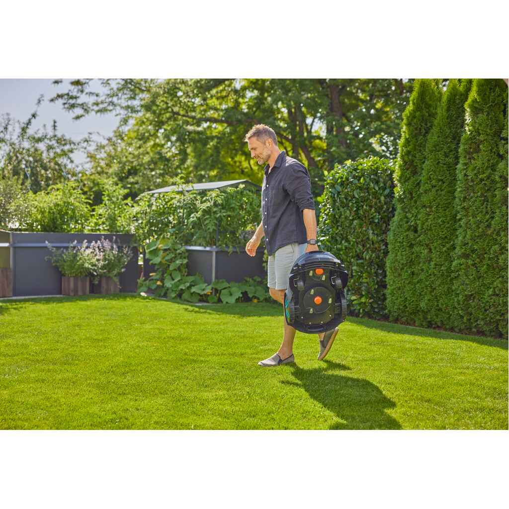 GARDENAn robottileikkurit on suunniteltu niin, että asentaminen onnistuu helposti itse. Siksi niiden mukana tulevat myös asennustarvikkeet. Erittäin yksinkertaisissa puutarhoissa maxin osalta hakukaapeli ei ole välttämätön, mutta monimutkaisissa puutarhoissa on mahdollista käyttää myös kahta hakukaapelia. Sovellus opastaa käyttöönotossa.