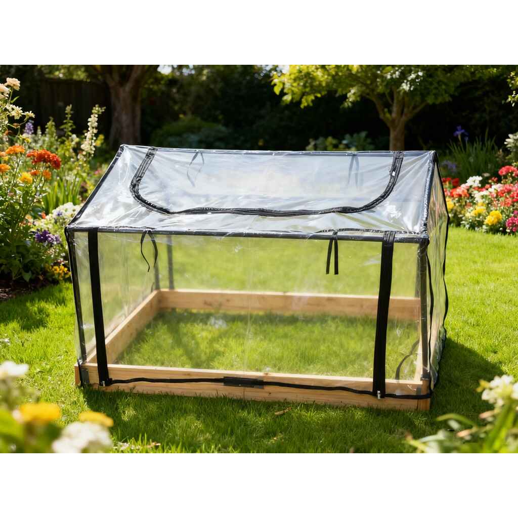 Kasvihuone on suunniteltu 120x80 cm kuormalavakauluksen päälle. Valmistettu läpinäkyvästä PVC-muovista ja runko metallista. Katossa on aukeava luukku, joka helpottaa kastelua ja hoitoa. Korkeus 60 cm.