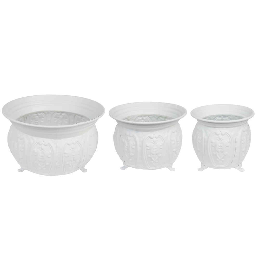 Metallinen valkoinen suojaruukku, kaunilla röyhelöreunuksella. Koko S 15x14,5 cm.