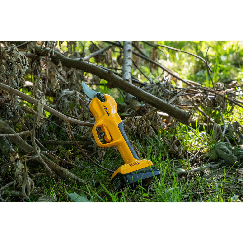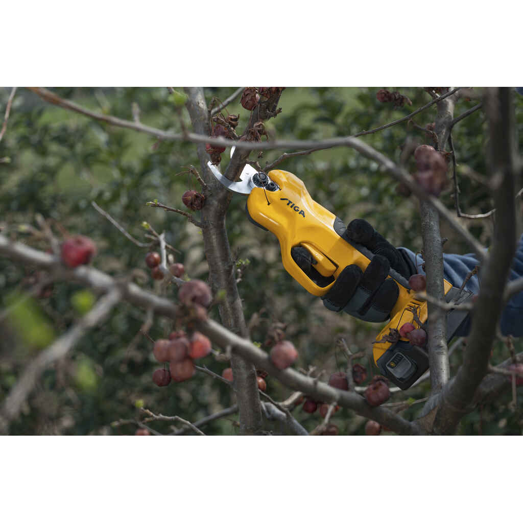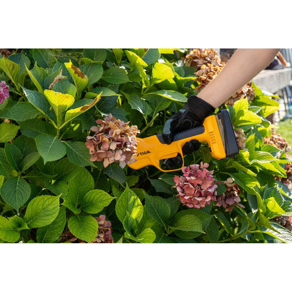 Etsitkö puutarhatyökalua pensaiden, kukkapenkkien ja pensasaitojen leikkaamiseen? STIGA SC 100e Kit -oksasakset on täydellinen ratkaisu halkaisijaltaan enintään 3 cm:n oksien leikkaamiseen helposti ja turvallisesti. Ergonomisesti suunnitelluissa STIGA-oksasaksissa on kahdella sormella käytettävä painike, jossa on helppokäyttöinen lukitusjärjestelmä ja automaattinen leikkaus. Valmiustilassa toimiva lukitus takaa maksimaalisen turvallisuuden sinulle ja muille pihalla oleville henkilöille. Erinomaisen tasapainonsa ja keveytensä ansiosta et väsy leikatessa. SC 100e Kit -sarjan terän avautumista voi säätää digitaalisesti kolmeen eri asetukseen eri halkaisijaltaan oleville oksille: 15, 25 ja 30 mm. Sarja toimitetaan STIGA ePower 20 V 2 Ah -akulla. Akku takaa riittävän käyttöajan ja älykkään energianhallinnan säätämällä tehonkulutusta työn vaatimusten mukaisesti.
