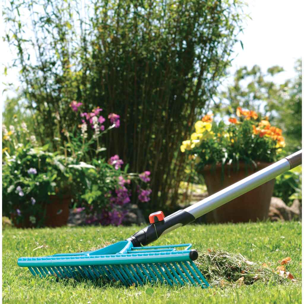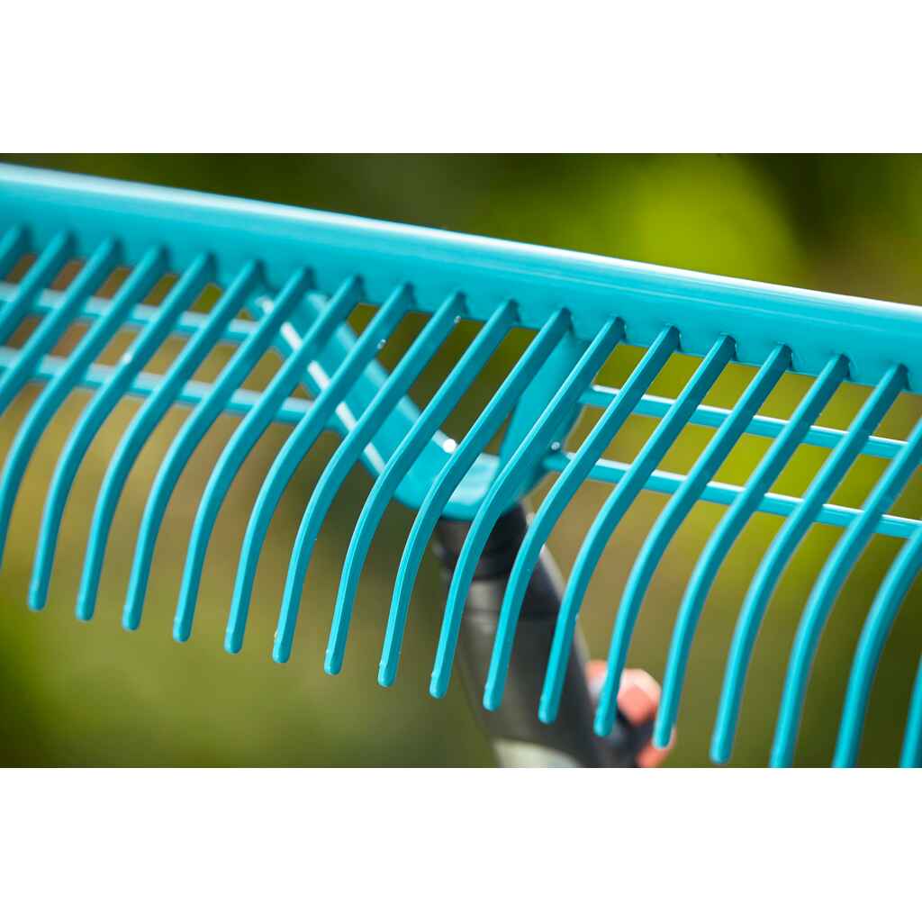 GARDENA Combisystem -nurmikkoharava on valmistettu korkealaatuisesta Duroplast-pinnoitetusta teräksestä, joka suojaa tuotetta ruostumiselta. GARDENA combisystem -nurmikkoharavalla leikkuujätteen ja lehtien haravointi käy kuin leikki. Kätevää: Leikkuujätteet ja lehdet jäävät haravoinnin aikana haravassa oleviin ruohonkeräyssankoihin. Työleveys on 60 cm. Nurmikkoharava sopii kaikkiin GARDENA combisystem -varsiin. GARDENA suosittelee 180 cm vartta. Takuu 25 vuotta.