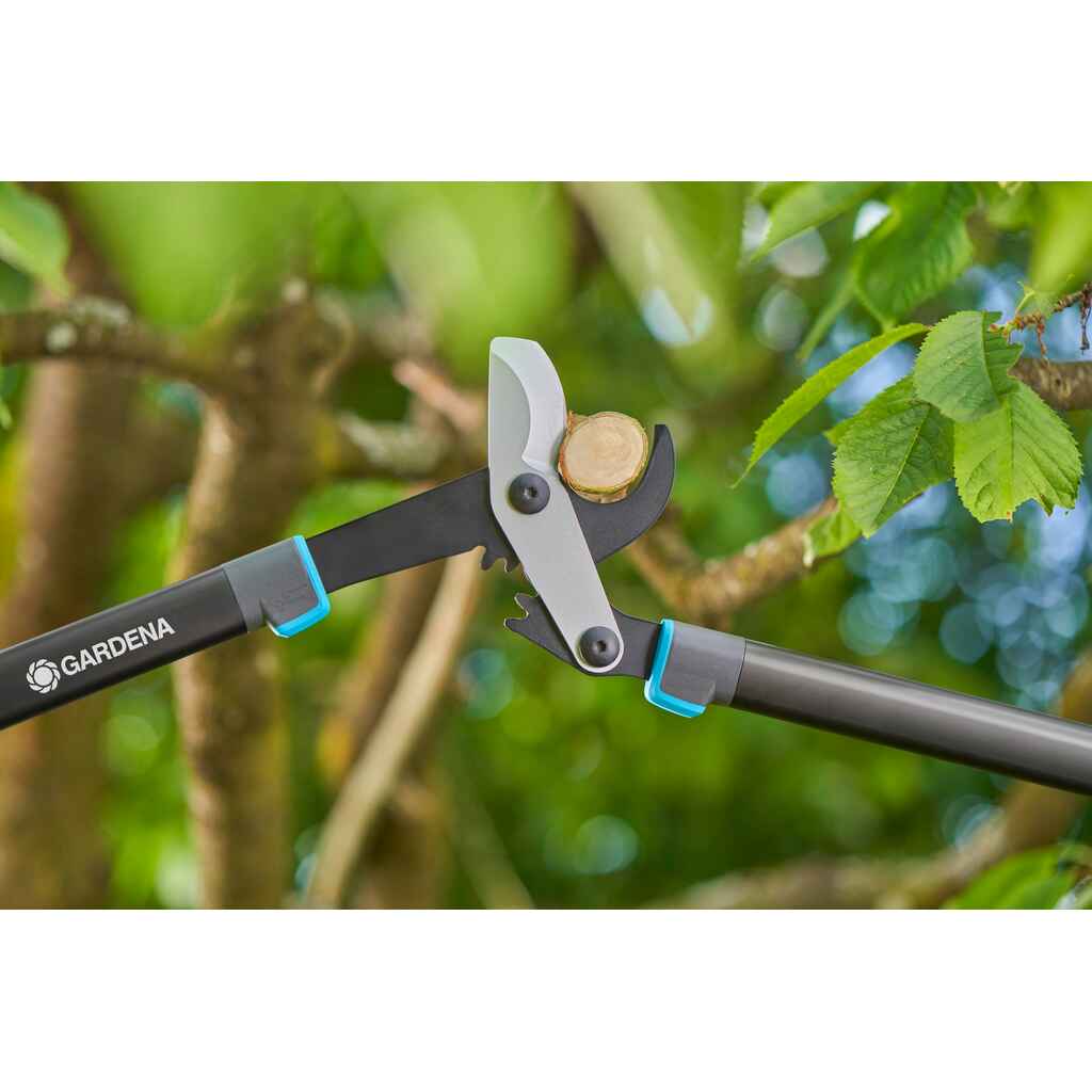 GARDENA EnergyCut Pro L -voimasaksissa on kaksi tarkkuushiottua laadukasta terää, joille voimaa tarjoaa sujuvasti toimiva integroitu voimanvälitysmekanismi. Integroitu voimansiirto varmistaa tehokkuuden ja aktivoituu juuri silloin, kun tarvitaan maksimaalista voimaa. Se keventää leikkaamista ja auttaa kolminkertaistamaan käyttäjän leikkausvoiman tarjoten samalla mukavuutta, tarkkuutta sekä vähemmän rasitusta työskentelyyn. Terät ovat erikoishionnan ansiosta terävät kärkeen asti.