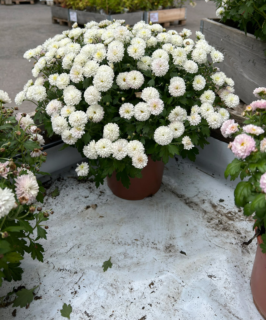 Kestävä ja helppohoitoinen, pitkään kukkiva krysanteemi valoisaan paikkaan. Ruukun halkaisija: 35-40 cm.