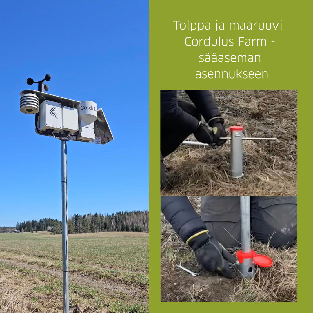 Tolppa ja maaruuvi Cordulus Farm -sääaseman asennukseen.