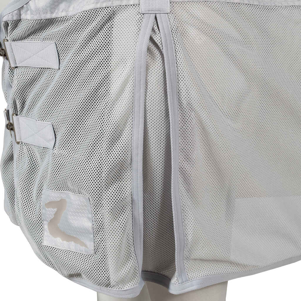 Horze Nevada Combo sade- ja ötökkäloimi on näppärä valinta kesään, sillä tämä kevyt yhdistelmäloimi suojaa hevosta niin kesäsateilta kuin ötököiltäkin. Loimen selkä ja yläosa on valmistettu vedenpitävästä materiaalista ja loimen sivuilla on puolestaan ötököiltä suojaavaa verkkoa. Loimen korkeat lapalaskokset antavat liikkumisvapautta, joten loimi sopii mainiosti myös ulkoiluun.