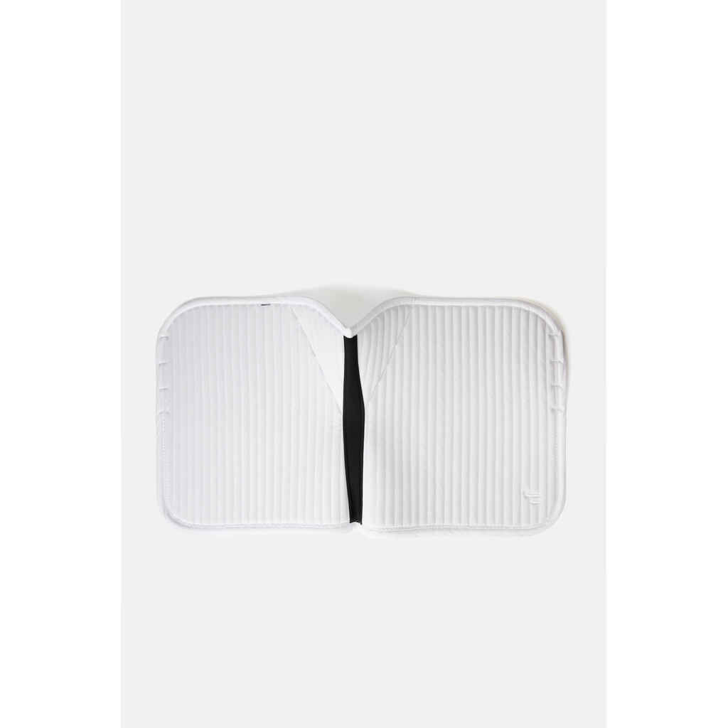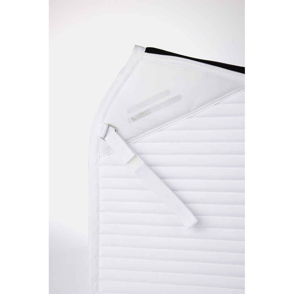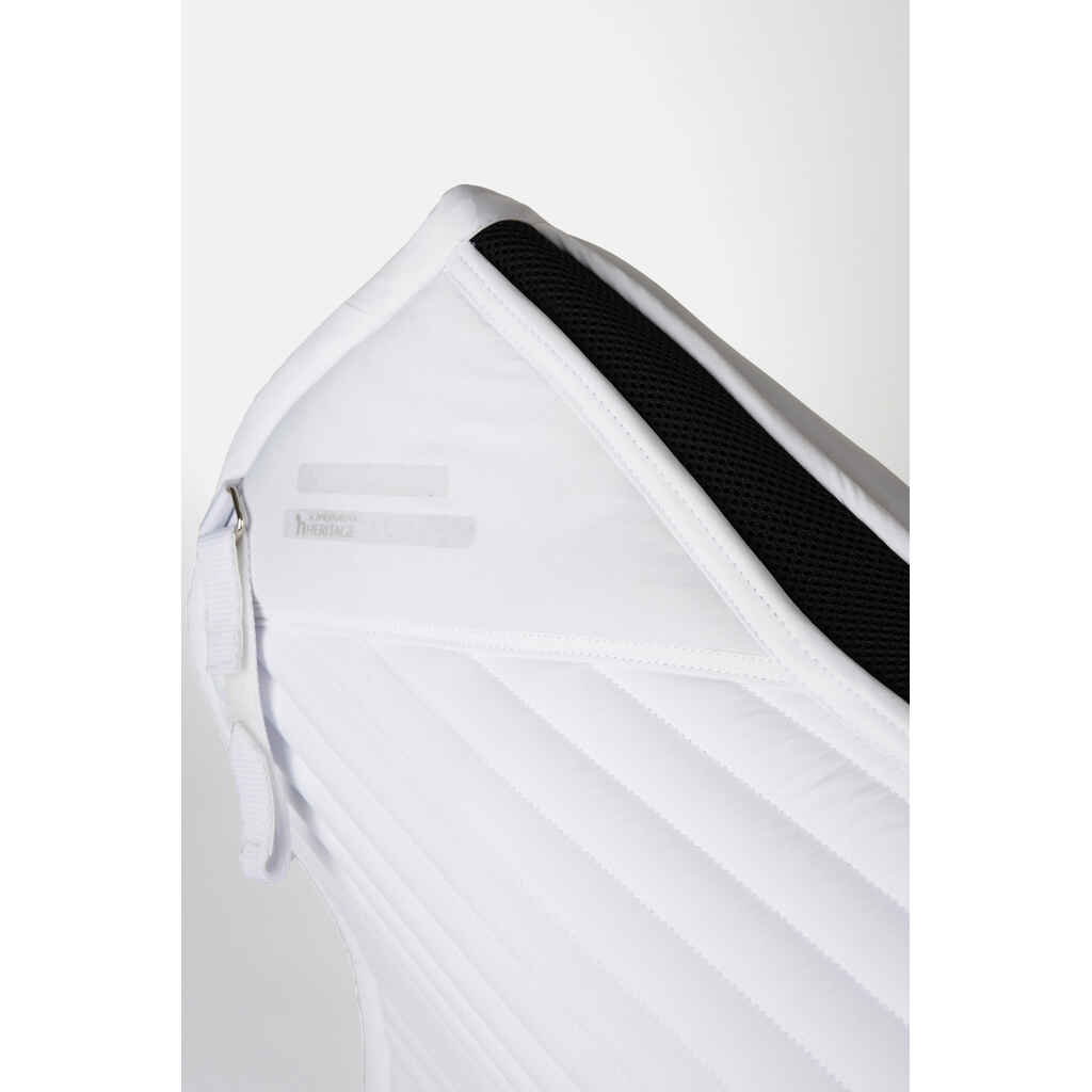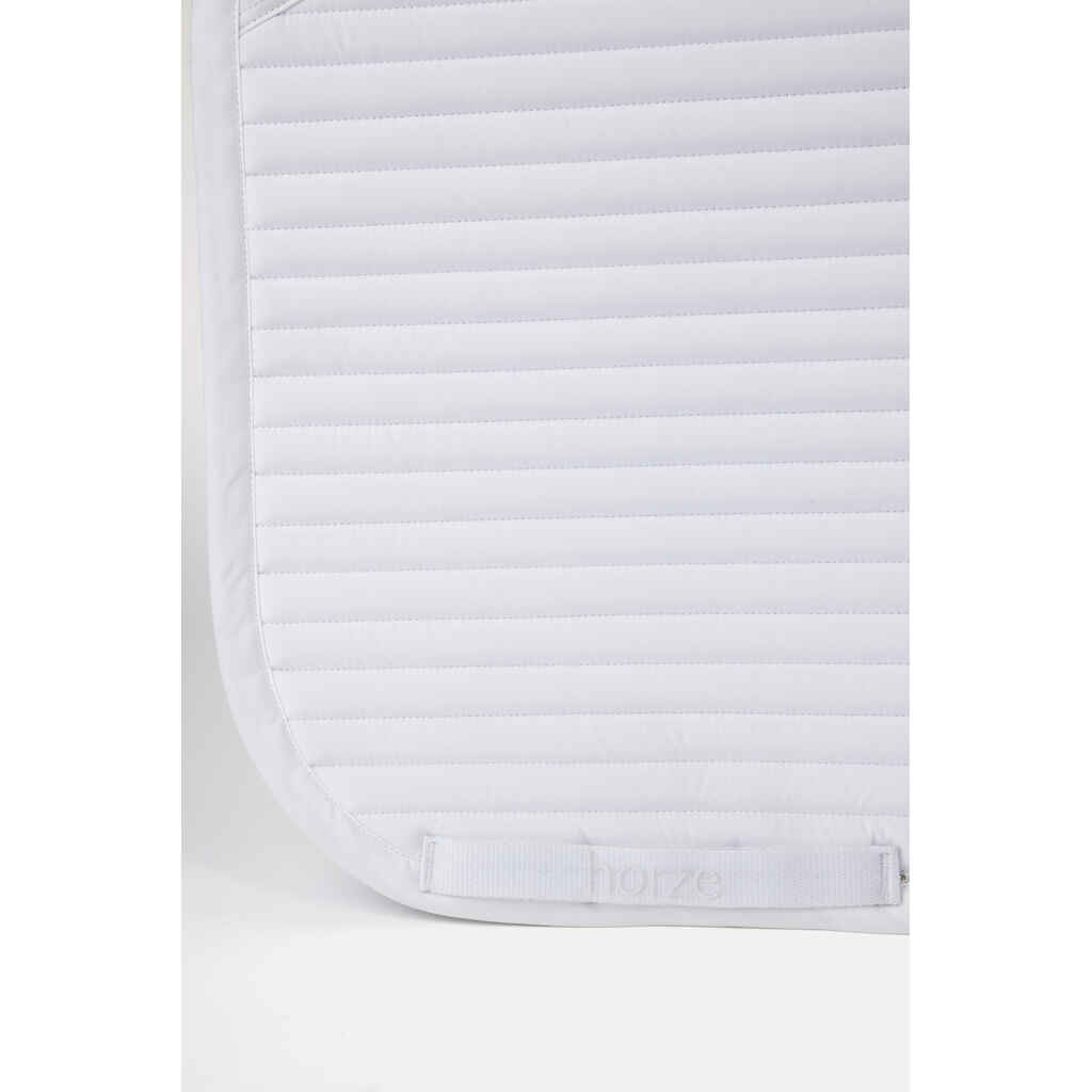 Horze Symphony koulusatulahuovassa on elegantin tyylikäs suoralinjainen tikkaus ja siroin kivin koristeltu reunanauha huovan takaosassa. Satulahuovassa on kaksi kiinnitysvaihtoehtoa (irrotettava nauha D-renkaalla sekä lenkki vastinhihnoille). Silikonipainatus sään kohdalla pitää satulan paikoillaan. Horze Symphony koulusatulahuovassa saatavilla myös valkoinen vaihtoehto kisahuovaksi!