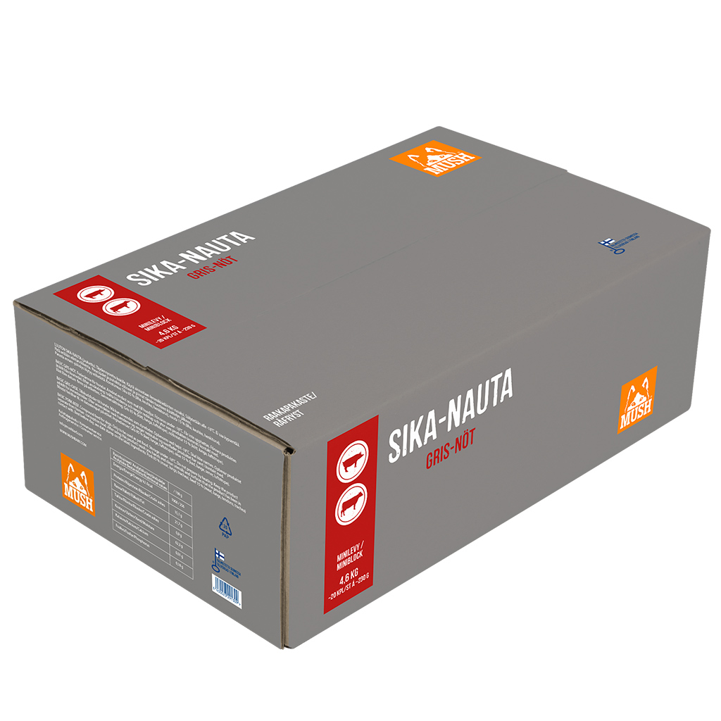 Näppärät raakapakastetut sika-nauta jauhelihalevyt osaksi koiran monipuolista raakaruokintaa. Mush Basic sarjan tuotteet soveltuvat tarjottavaksi osana koiran monipuolista raakaruokintaa. Lisäksi Basic-sarjan tuotteita voi tarjota muiden ruokintatapojen rinnalla esimerkiksi kuivaruokaa täydentämään.