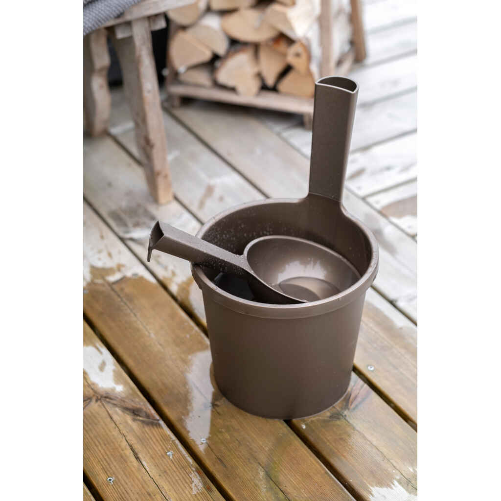 Luo saunaan harmoninen tunnelma Orthex-saunatuotteilla. Tyylikäs muotoilu ja tarkkaan mietityt käytännölliset ominaisuudet tekevät saunahetkistä entistäkin rentouttavampia. Tämä pienikokoinen vesikauha sopii erityisesti pieneen saunatilaan ja löylynheittoon. Kauhassa on ergonominen kahva, josta se voidaan kätevästi ripustaa roikkumaan säilytystä varten. Design by Pentagon Design. Valmistettu Suomessa kestävästä muovista. Kestää jopa 65 °C lämpöä.