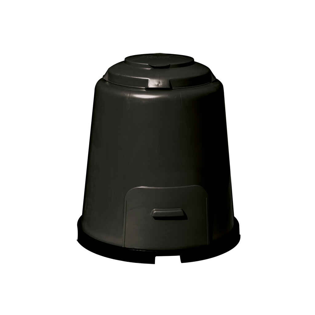Puutarhajätteiden kompostointiin musta Rapid kompostori 280 l sisältäen pohjan. Soveltuu 2-4 henkisen perheen käyttöön. Valmistettu 100 % kierrätetystä materiaalista (PP). Suuri saranoitu syöttöaukko ja liukutyhjennysluukku helpottavat täyttöä ja tyhjennystä. Sileät sisä- ja ulkopinnat helpottavat puhdistamista. Kompostorin kannen sivuilla on tuuletusaukot, jotka lisäävät kompostorissa ilmankiertoa ja nopeuttavat kompostoitumista.