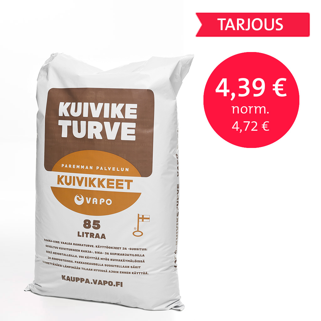 Siirrä kuiviketurvesäkki lämpimään tilaan sulamaan hyvissä ajoin ennen pakkaskautta. Sisältö voi jäätyä, koska kuiviketurve sisältää kosteutta. Kuiviketurve kestää kuitenkin säilytystä kaikissa olosuhteissa.