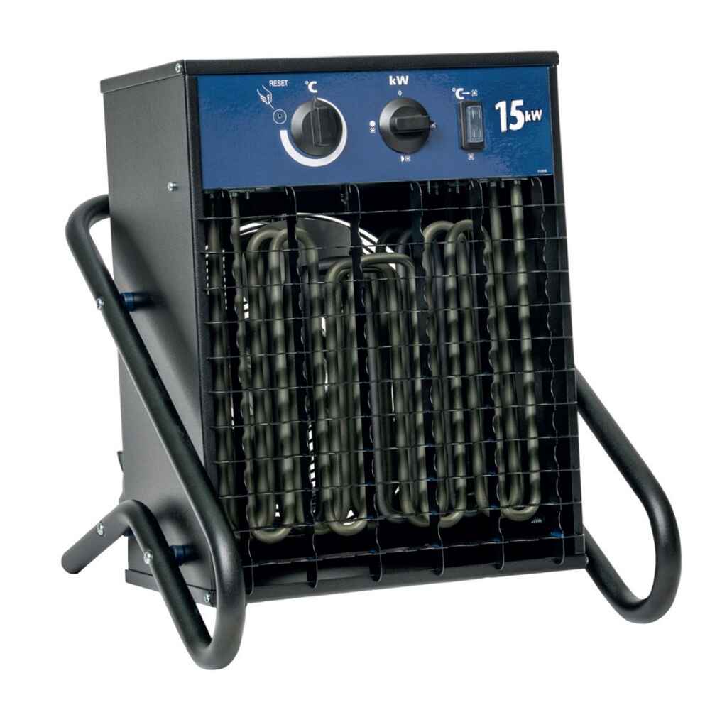 Takuuaika 60 kkOsateho 7,5kW, täysteho 15,0kW. IP44. Ilmamäärä 1200m³/h. Huonetermostaatti +5-+35°C.