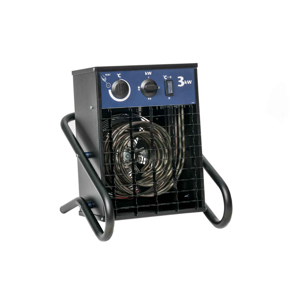 Takuuaika 60 kkOsateho 1,5kW, täysteho 3,0kW. IP44. Ilmamäärä 400m³/h. Huonetermostaatti +5-+35°C.