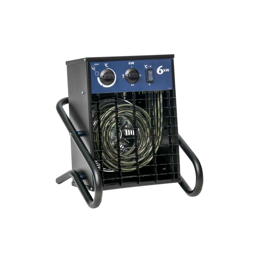 Takuuaika 60 kkOsateho 3,0kW, täysteho 6,0kW. IP44. Ilmamäärä 400m³/h. Huonetermostaatti +5-+35°C.