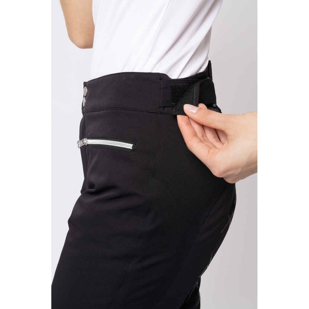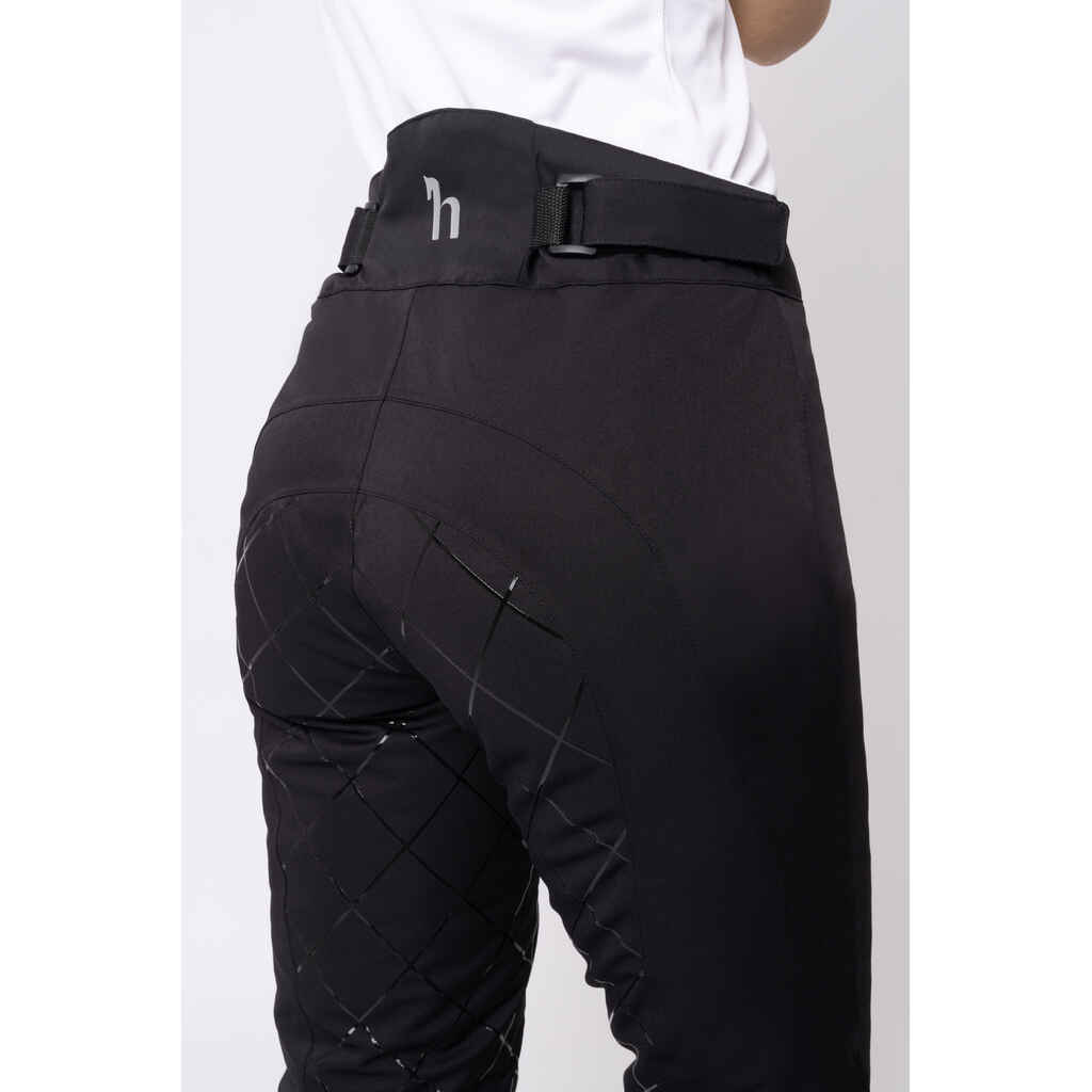Tyylikkäät Horze Adeline topparatsastushousut lämmittävät satulassa ja tallissa. Näissä topparatsastushousuissa on näppärä, tarranauhoilla säädettävä vyötärö. Vyötärönauha on muotoiltu selästä hiukan tavallista korkeammaksi. Veden- ja tuulenpitävästä kankaasta valmistetuissa ratsastushousuissa on myös teipatut saumat. Pitoa lisää silikonigrippi. Lahkeissa polviin asti aukeavat vetoketjut sekä jalkalenkit.