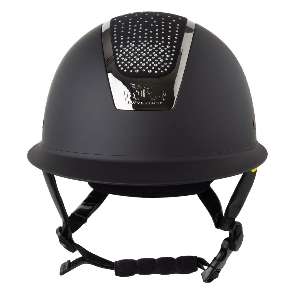 Upea B Vertigo Majoris ratsastuskypärä MIPS® safety system -teknologialla, joka imitoi pään omaa turvajärjestelmää. Näyttävä kypärä, jossa upeasti sädehtivät koristekivet. Kyprärän erittäin iskunkestävä ulkokuori kestää hyvin lämmönvaihtelua. Sisäkuori on suunniteltu vähentämään sivuttaisten iskujen aiheuttamaa voimaa (MIPS).