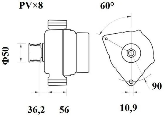 | Etäisyys hihnapyörästä laturiin (mm) | 36,2 |