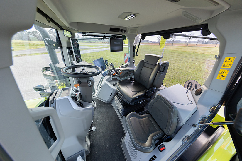 Kun oven sulkee, hiljaisuuden oikein huomaa; koppi on harvinaisen hyvin äänieristetty, eikä ajaessakaan melu hiivi korviin. CLAAS lupaa, että käytössä ohjaamoon kuuluu vain 66 dB verran moottorin murahtelua – joka on tässä vaiheessa lähinnä pehmeää kehräämistä.