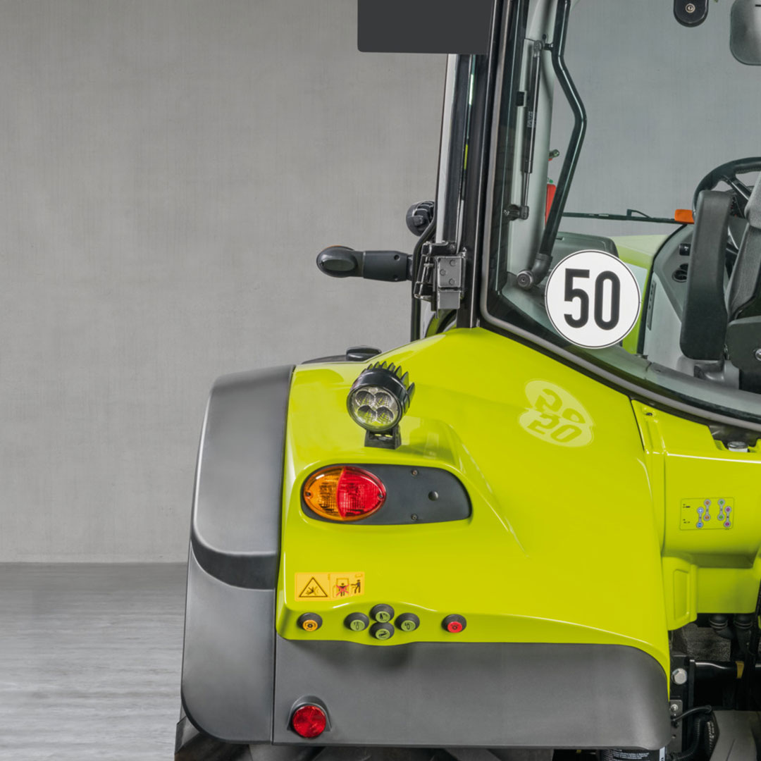 Pitkän akselivälin ja optimoidun painon jakautumisen (50 % etu, 50 % taka) yhdistelmä kompaktiin kokonaispituuteen nähden varmistaa hyvän käsiteltävyyden sekä suorituskyvyn. Tilava ja hyvin valaistu ohjaamo tarjoaa vapaan näkyvyyden koko työkoneen leveydelle. Neljästä kohdasta täysjousitettu ohjaamo ja PROACTIVE-etuakselijousitus takaavat erinomaisen ajovakauden myös kaarreajossa. Ohjaamossa on monia mukavuutta lisääviä tekijöitä, kuten kylmälokero ja laajakulmapeili lisäämään maantieajon turvallisuutta.