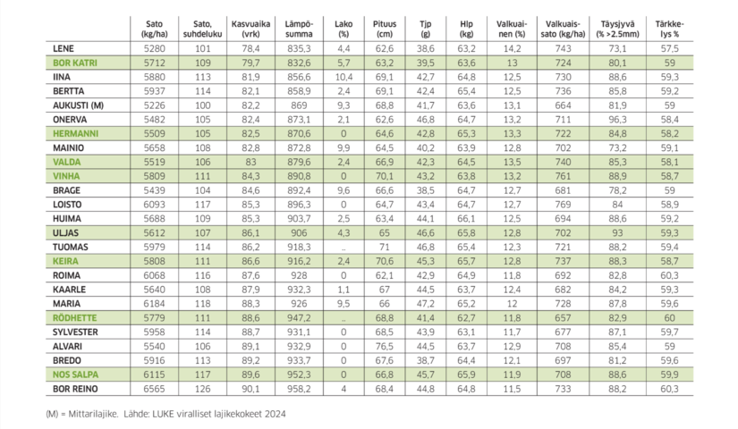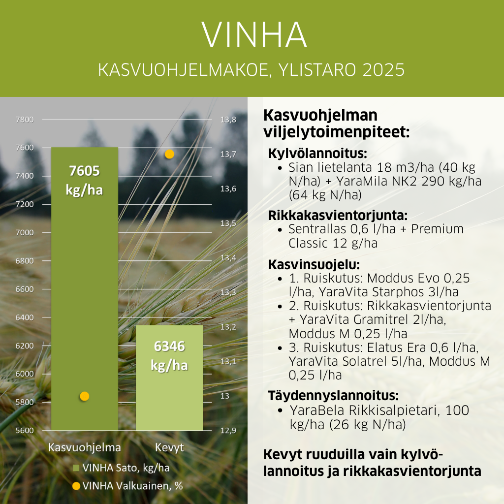 - Suurijyväinen, korkea valkuaispitoisuus (13,2 %)