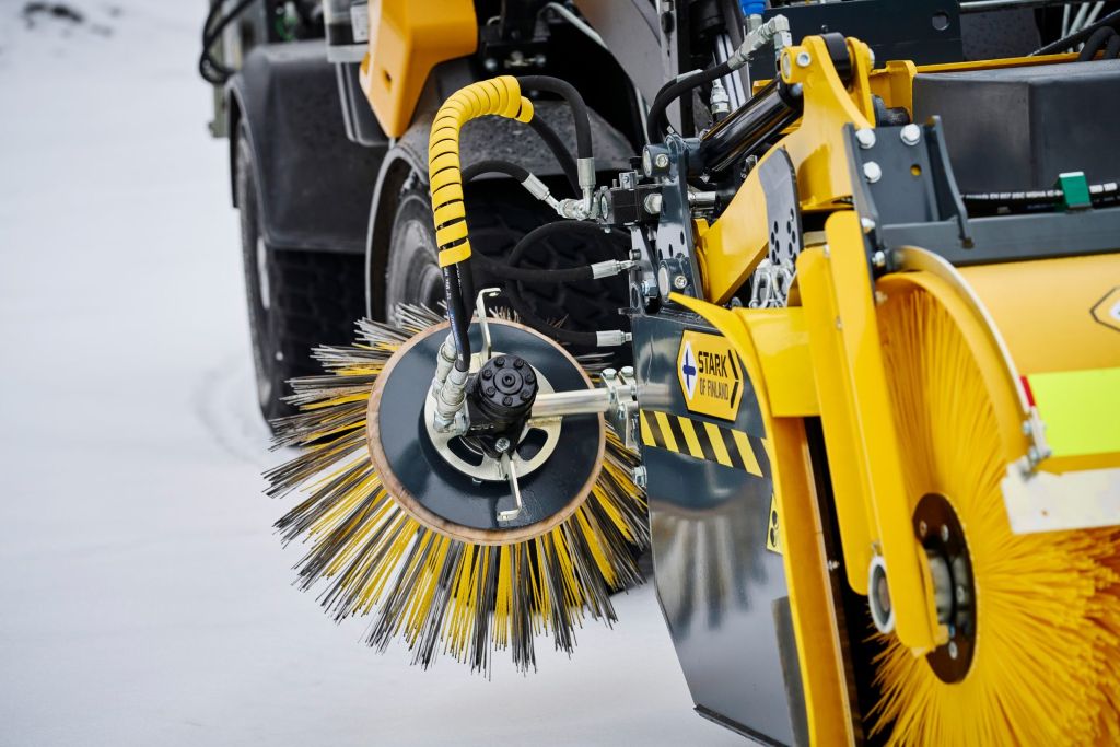Stark Tornado on vahvin valinta sokkeloisten pihojen, monimuotoisten alueiden ja katujen harjaukseen. Erinomainen näkyvyys peruskoneesta työalueelle lisää tehokkuutta ja turvallisuutta.