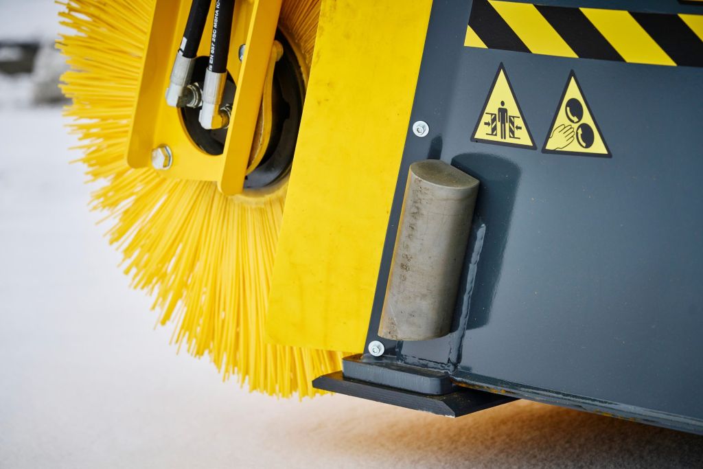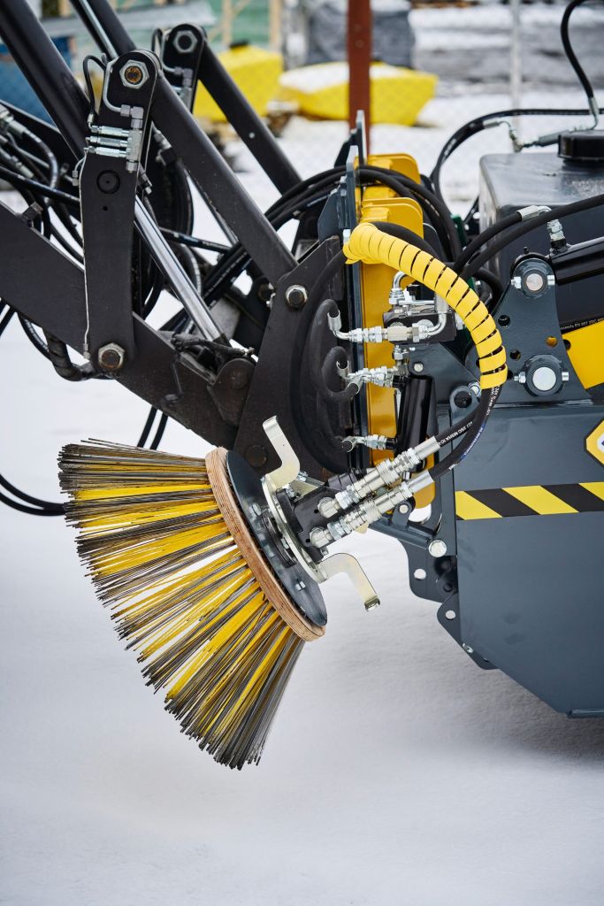 Harjatelan sisään integroitu hydraulimoottori on suojassa törmäyksiltä. Tämän ansiosta harjaus myös seinänvierusta myöten onnistuu