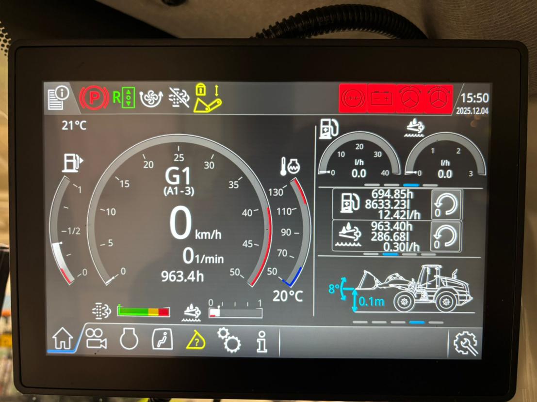 Tästä juuri huollettu vähän ajettu kone valmiina töihin. Ajettu vain 965h. Saatavilla vaihtoehtoisesti palarengassarjalla tai lisähintaan kaksilla renkailla (kuvissa näkyvät + palarenkaat). Kysy myös vuokrausta! Aisasto, Z-kinematiikka, suurennettu nostokorkeus Etupistoke, katkaisijalla CLAAS‑tietoliikennemoduuli (LTE) Machine Connect ‑lisenssi – 5 vuotta CLAAS Remote Service, sisältää 5 vuoden lisenssin Vetokita, mekaaninen Jatkuvavirta‑hydrauliikka, 3. piiri ja 4. lisähydrauliikkapiiri, etu Paineeton paluu Vuotoöljyputki 750/65 R26 Michelin MegaXBib ‑renkaat Taka-akselin kallistuskulman rajoitin Takalokasuojien levennys, 750‑renkaille, säädettävä Etulokasuojat, säädettävät Huippunopeus 40 km/h DPS 6,8 l, 168/185 kW, ISO 14396, Stage V Kääntyvä jäähdytyspuhallin, sisältää automaattitoiminnon Moottorin jäähdytysnesteen esilämmitys Radio, Bluetooth ja hands‑free ulkoisella mikrofonilla Automaattinen ilmastointi Kallistuva ja korkeussäädettävä ohjauspyörä Kuljettajan istuin, kangasverhoilu, matalataajuusjousitus, istuinlämmitys Vasen käsinoja joystick‑ohjaukselle Ulkopeilit, mekaanisesti taittuvat, lämmitetyt, sähköinen säätö Monitoimiohjain Laajakulmapeilit PROFI‑kamera – taakse Halogeeniset etutyövalot, 4 kpl Halogeeniset takatyövalot, 2 kpl Halogeeniset ajovalot Rullattava aurinkosuoja, etu Hienopölysuodatin, luokka F7 Automaattinen takatyövalojen kytkeytyminen peruutettaessa USB‑latausliittimet, 2 kpl Keskusvoitelu Ohjelmoitava automaattinen kauhan palautus Automaattinen kauhan palautus monitoimivivun painikkeella Ohjelmoitava nosto-/laskukorkeus (SMART LOADING) Joystick‑ohjaus Puomin päätyvaimennus, säädettävä Kauhan asennon näyttö näytöllä Automaattinen kauhan palautus kaatoasennosta Ryömintänopeustoiminto ja moottorin kierroslukumuisti Kauhan kaatoavustin LED‑vilkku, taitettava Peruutussummeri Letkurikkoventtiili Työkalusarja