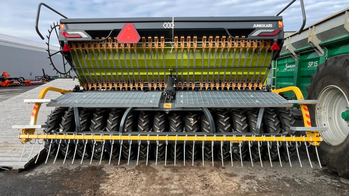 VARUSTELU & OMINAISUUDET: - Järeä hammastettu kiilajyrävannas, riviväli 12,5 cm - Vannaspainatus 20-120 kg, hydraulinen keskussäätö - Maapyöräkäyttöinen voimansiirto syöttölaitteille - Syöttömäärän portaaton vaihdelaatikkosäätö - Graafinen G-Wizard -ohjain - Vetorunko Heavy - Pyöränvälijyrä 10.0/75-15.3" -renkain - Telijyräpyörästö 7.5-20 " -renkain, keskitetty rasvaus - Jälkihara päistenostolla - Säiliötilavuus 5 700 l, säädettävä väliseinä - Säiliövahdit 2 kpl - Lannoiteseulat - Sekoitinakseli siemenpuolella - Jousipressu keskitetyllä lukituksella - Työtasot ja askelmat - LED-valot ja heijastimet