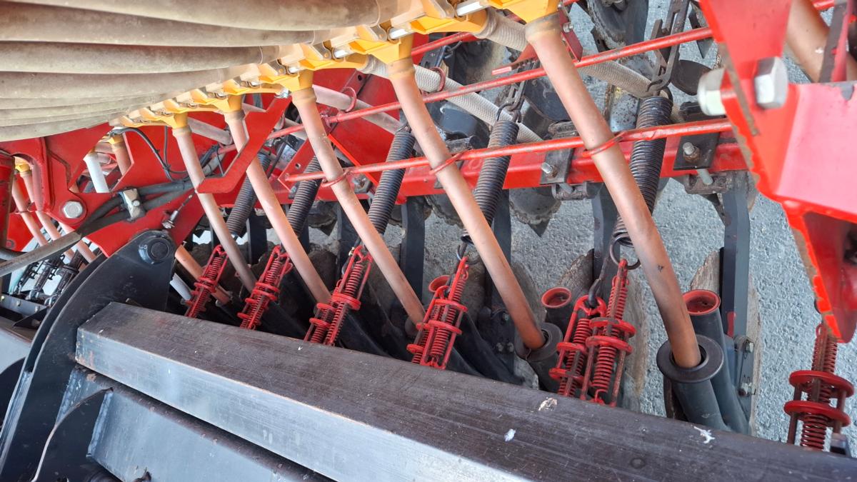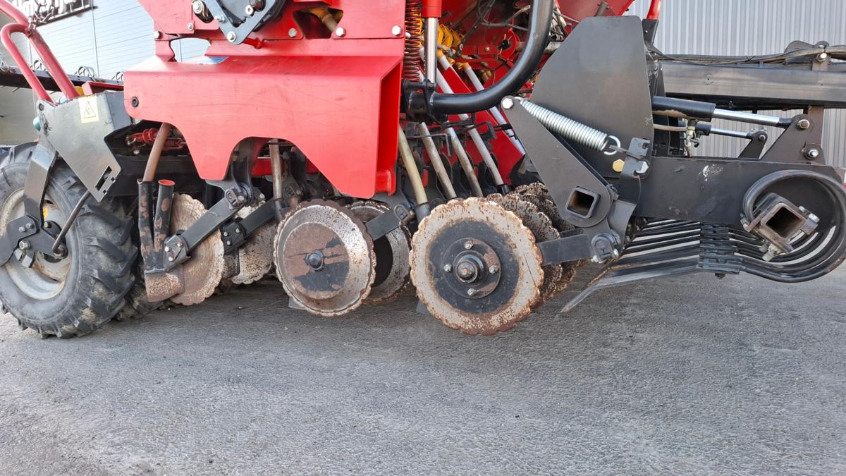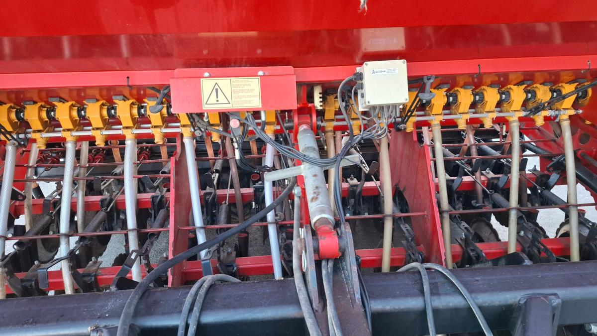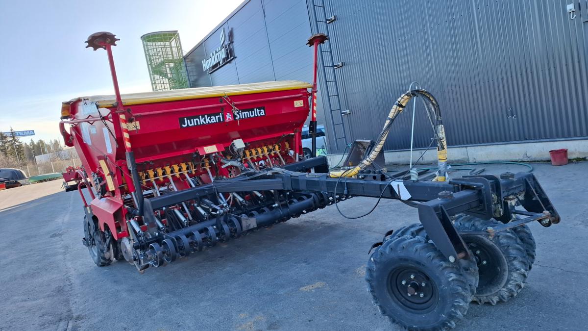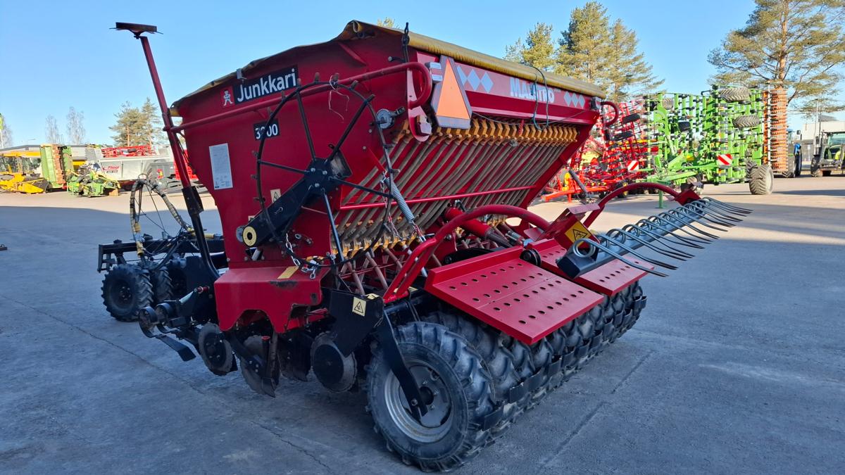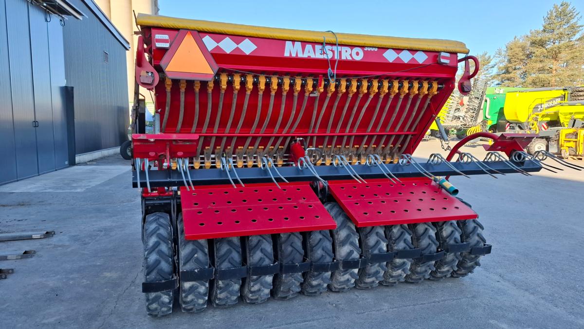 3000 Maestro pakkerilla, etuladalla, piensiemenlaitteella sekä erillisellä lannoitevantaistolla.