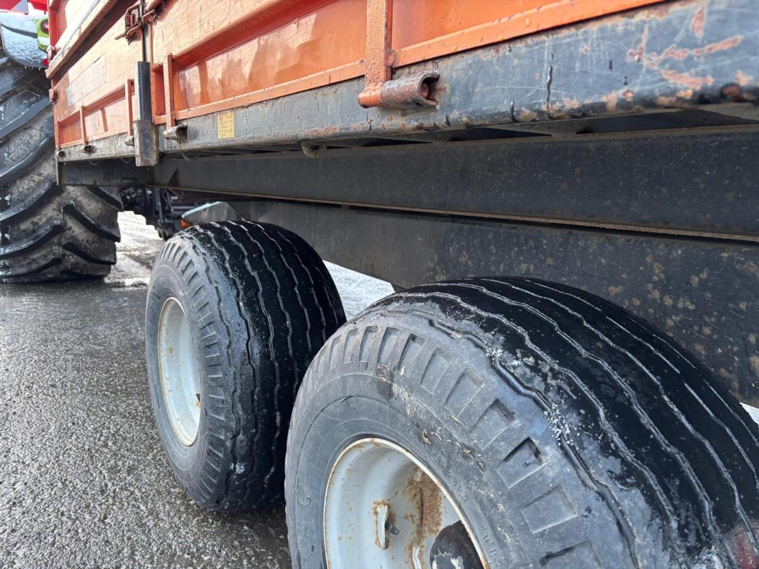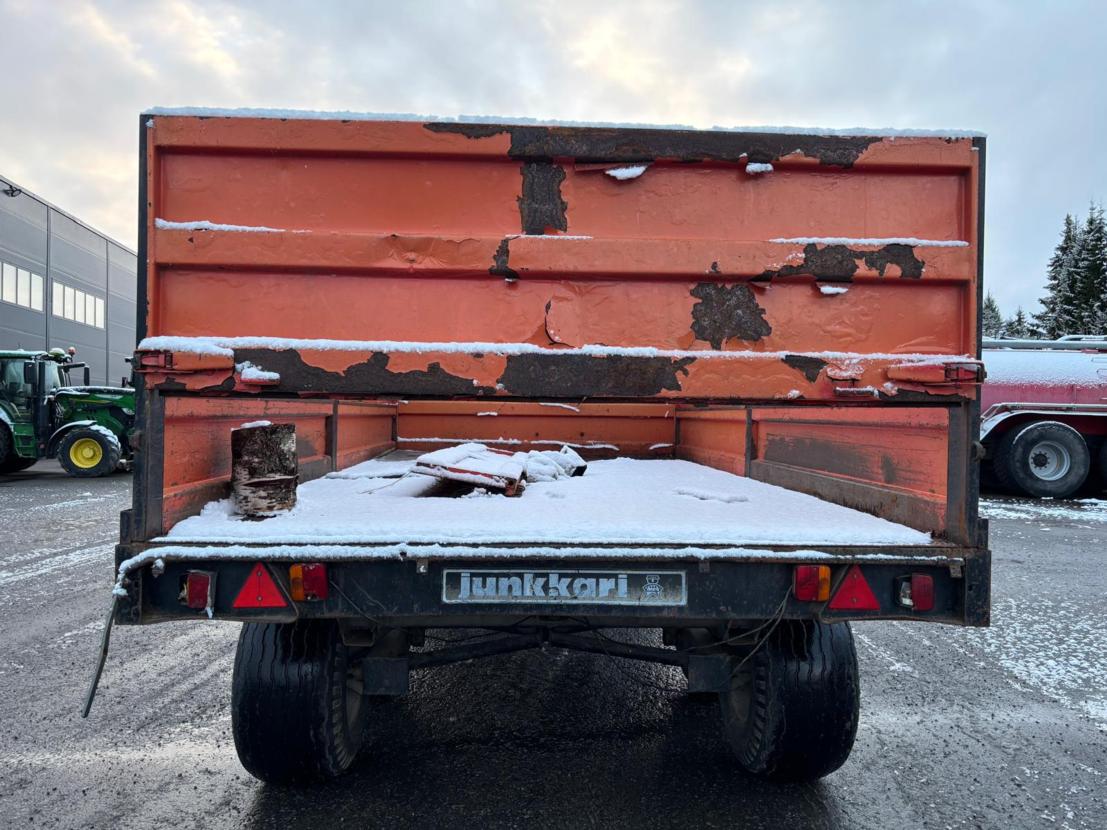 Lisälaidallinen Junkkarin valmistama kärri. Maalipinnassa sanomista, laidat suorat ja ehyet.