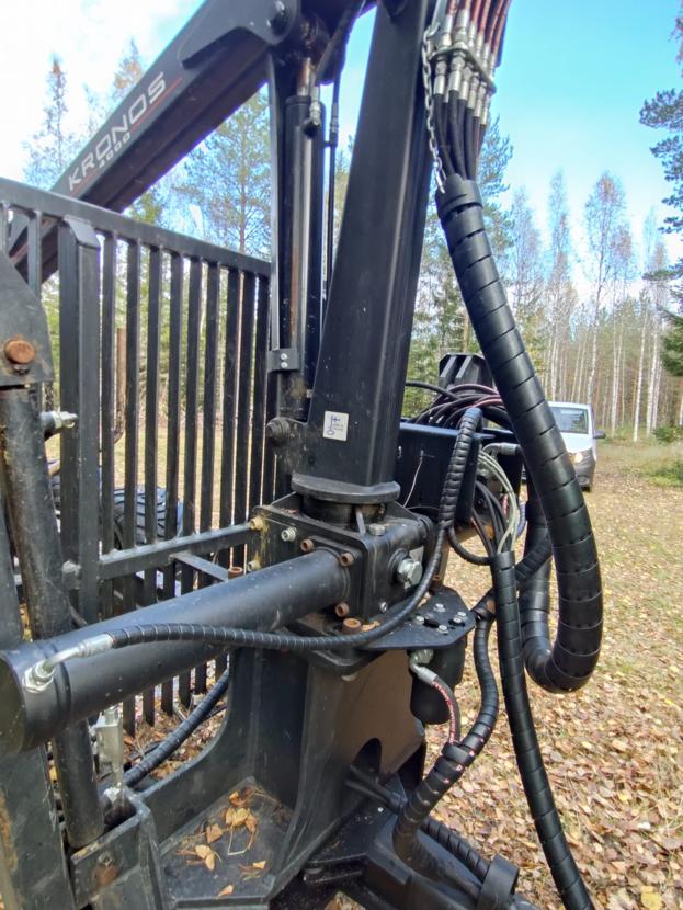 Erittäin hyväkuntoinen takasiltaan tai aisaan laitettava kuormain.Hydraulinen esiohjaus.