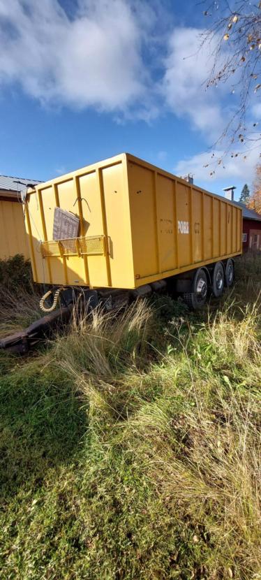 Myyntitilissä asiakkaan lukuun 3-akselinen kiinteälaitainen perävaunu. Savusen konepajan valmistama perävaunu. Alusta ilmajousitettu. Omalla sähkötoimisella kompressorilla varustettu. Kolmas akseli pakko-ohjattu. Rengaskoko 315/80 R22,5. Lavalla pressukaaret ja kelattava kuormapeite. Lavan mitat: Pituus 7,5m, Leveys 2,45m ja korkeus 1,70m. Tilavuus 31M3. Tästä vankkarakenteinen perävaunu esim. viljan ja hakkeen ajoon.