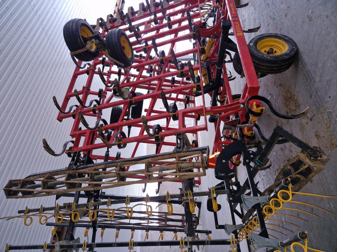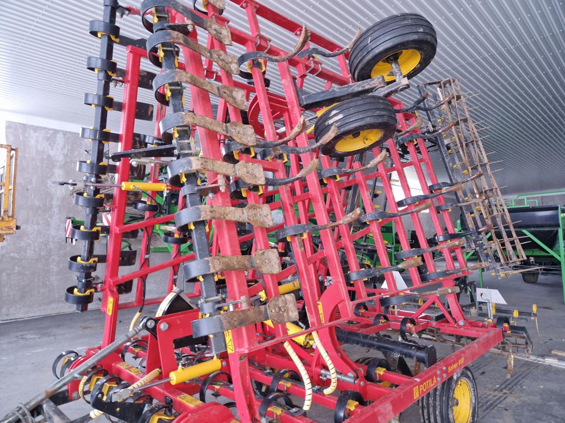 Järeä isolla piikillä oleva Potila Solver 800. Etulata, varpajyrä ja tupla jälkihara. Nähtävillä Hankkija Seinäjoki!