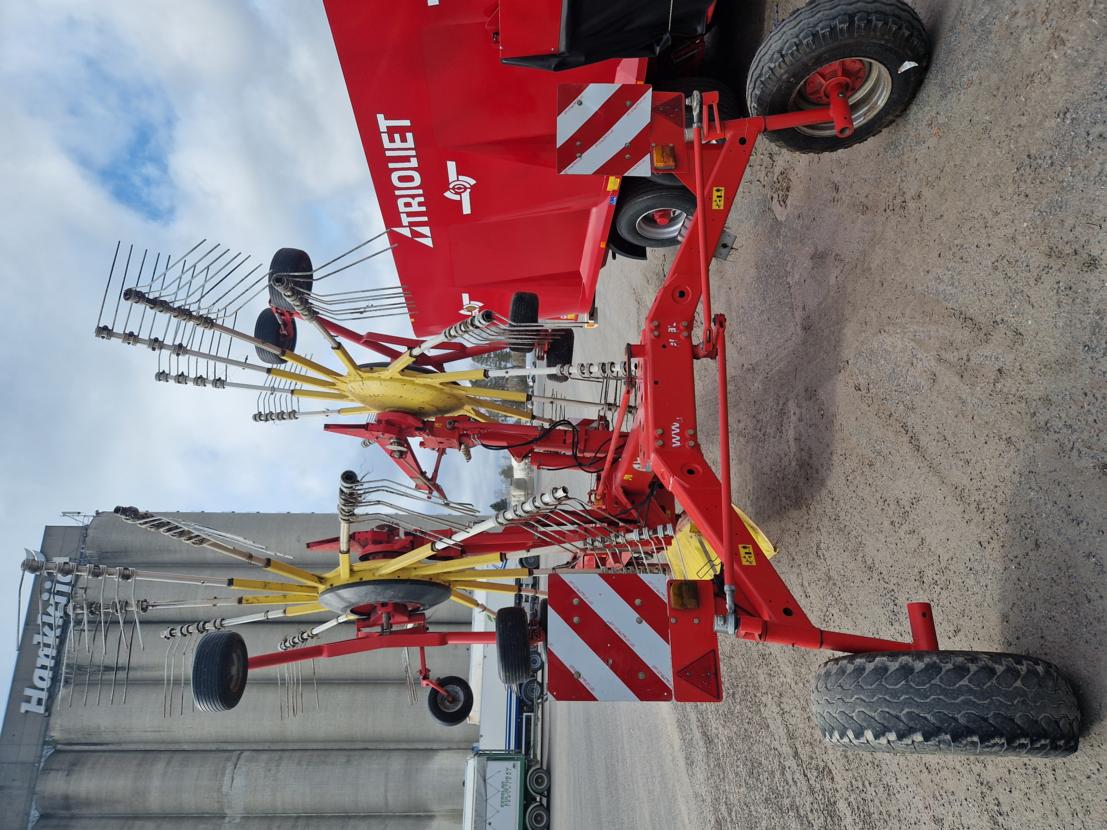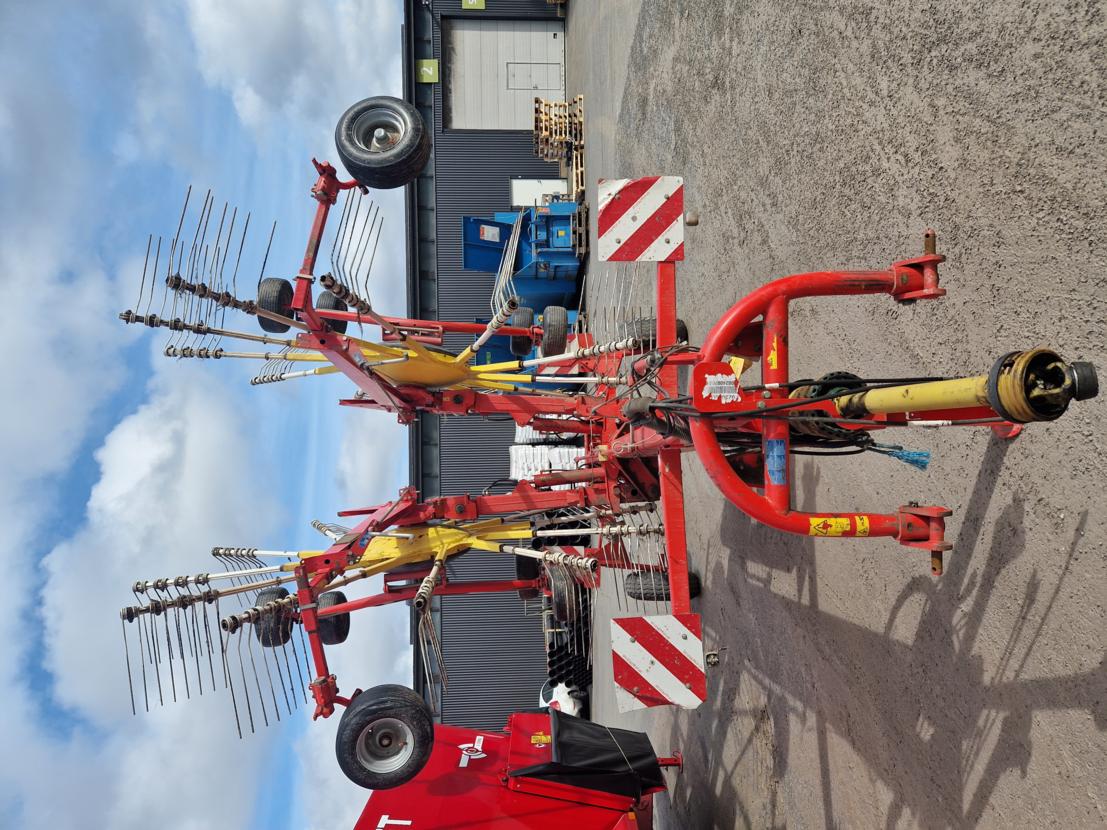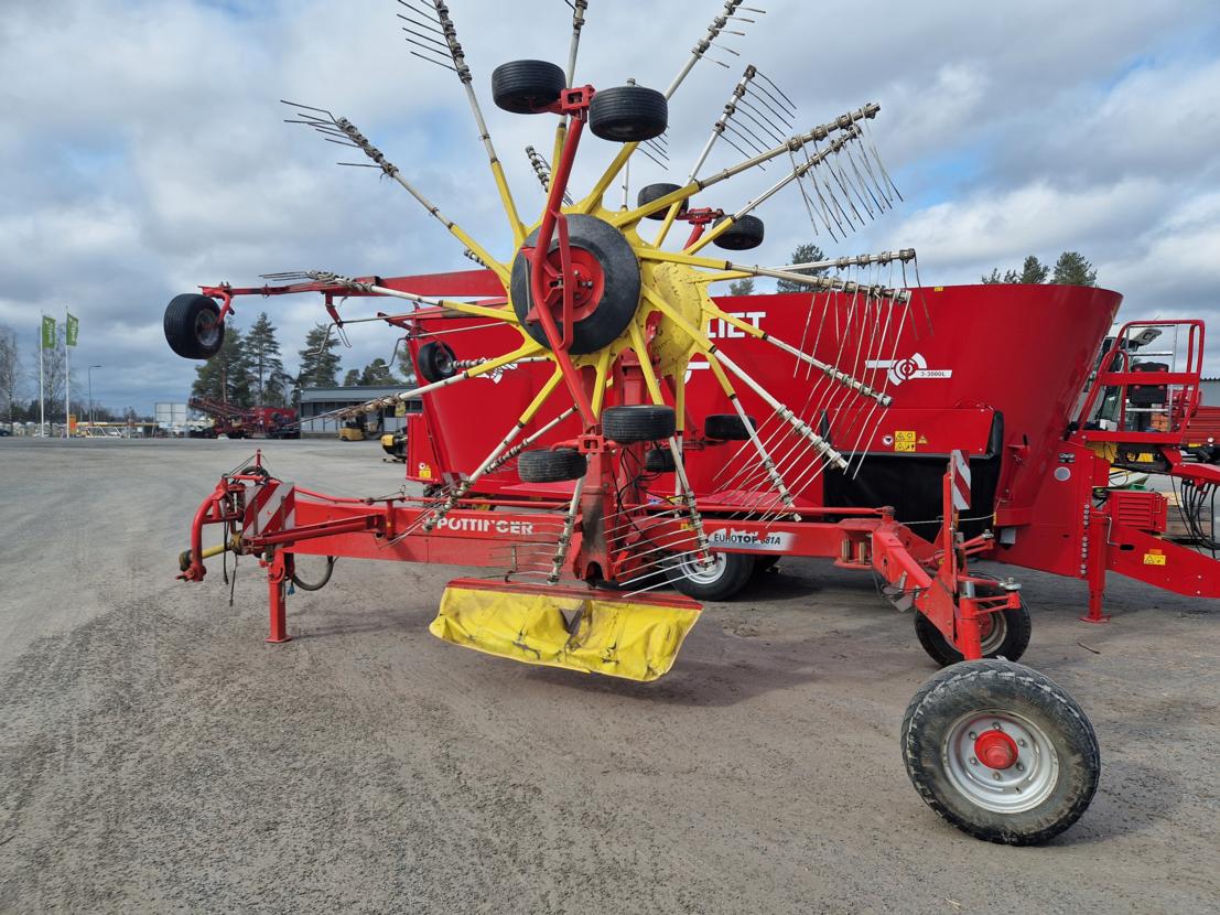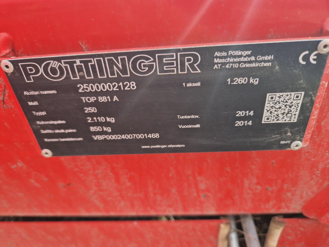 Pöttinger 881 karhotin. Täysin mekaaninen perus karhotin. Muutamia piikkejä poikki. Nähtävillä Hankkija Seinäjoki.