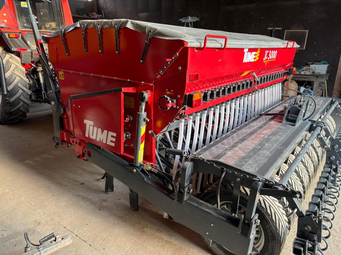 Tume JC 3000, varusteet: integroitu Hs-laite pääsäiliön sisällä, maapyöräveto, pyöränvälijyrä, renkaanjäljen kuohkeuttajat, Agrocont ohjain ajouralaitteella, seulat siemen ja lannoitesäiliössä, sekoittaja-akselit lannoite- Hs-säiliössä. Vahvistettu vetokarttu. Tehdaskunnostettu, jonka jälkeen kylvetty 344ha. Ei ruostetta tai maalivaurioita säiliöissä