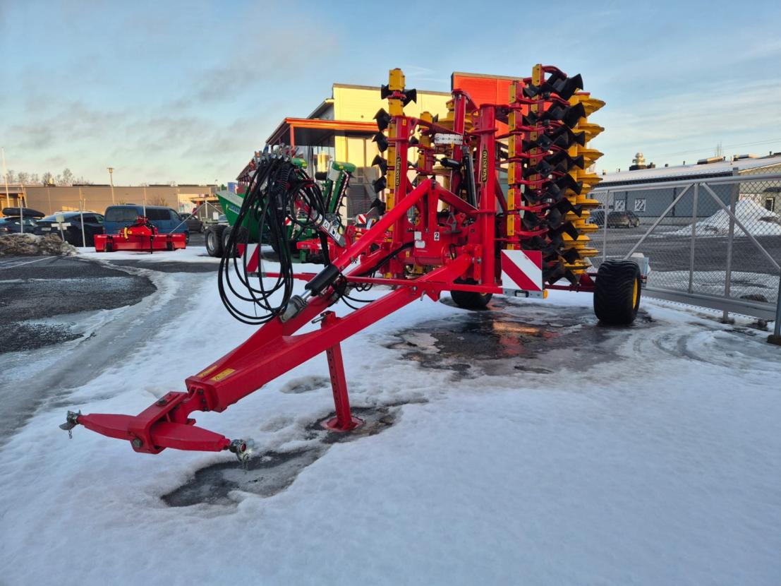 tehollinen työleveys 4,0m jyrän leveys 4,4m kuljetusleveys 2,86m kuljetuskorkeus 2,7m lautasia 34 kpl, 12,5 cm lautasväli tehontarve 150-200 hv hydrauliikan tarve 3/4 2-toimista