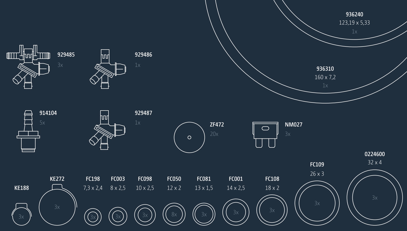 Yleiset varaosat ja tiivisteet kätevässä, helposti mukana kuljetettavassa muovisalkussa. Sopii Amone ruiskuihin, joissa TG-venttiilistö.